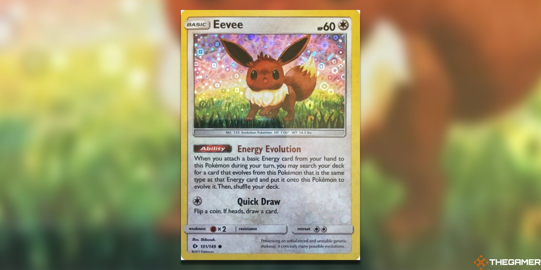 Eeveeは、Pikachuが行う公式のマスコットタイトルを担っていないかもしれませんが、この非公式の姿はPokemon TCGなどで愛されており、収集する非常に貴重なカードがいくつかあります。ここでのホロパターンは珍しく、イービーの背後にある空への完璧な追加として機能します。