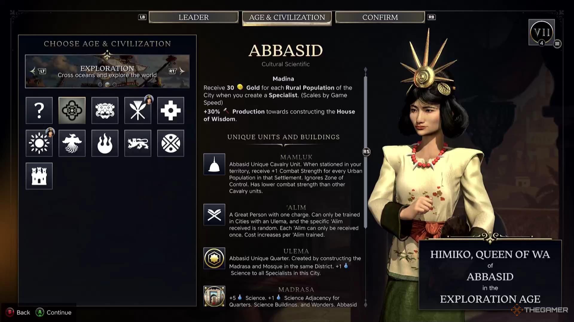科学文明を求めているリーダーに関しては、探検時代にはいくつかの強い選択があり、アッバシッドは最初です。彼らは明らかに持っていますが重機の焦点、彼らはまた提供するつもりですゴールドボーナスへの小さなブースト、 同じように。