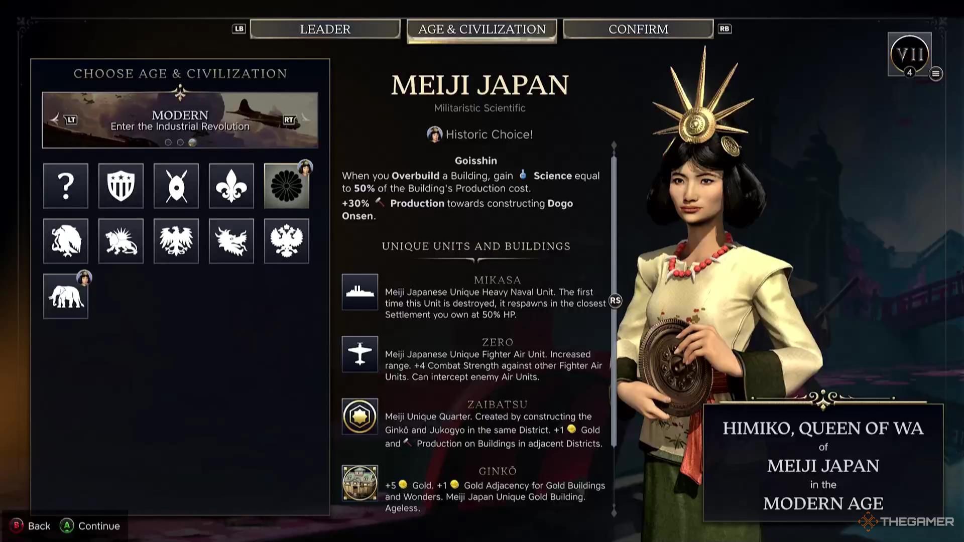 科学的な現代文明に関しては、明治日本に近づく人はほとんどいません。それらの組み合わせ防御ユニット、生産ボーナス、および科学ボーナス助けることができます科学的な勝利に向けてあなたの残りの道を推進する、特に上記の以前の文明に従うとき。