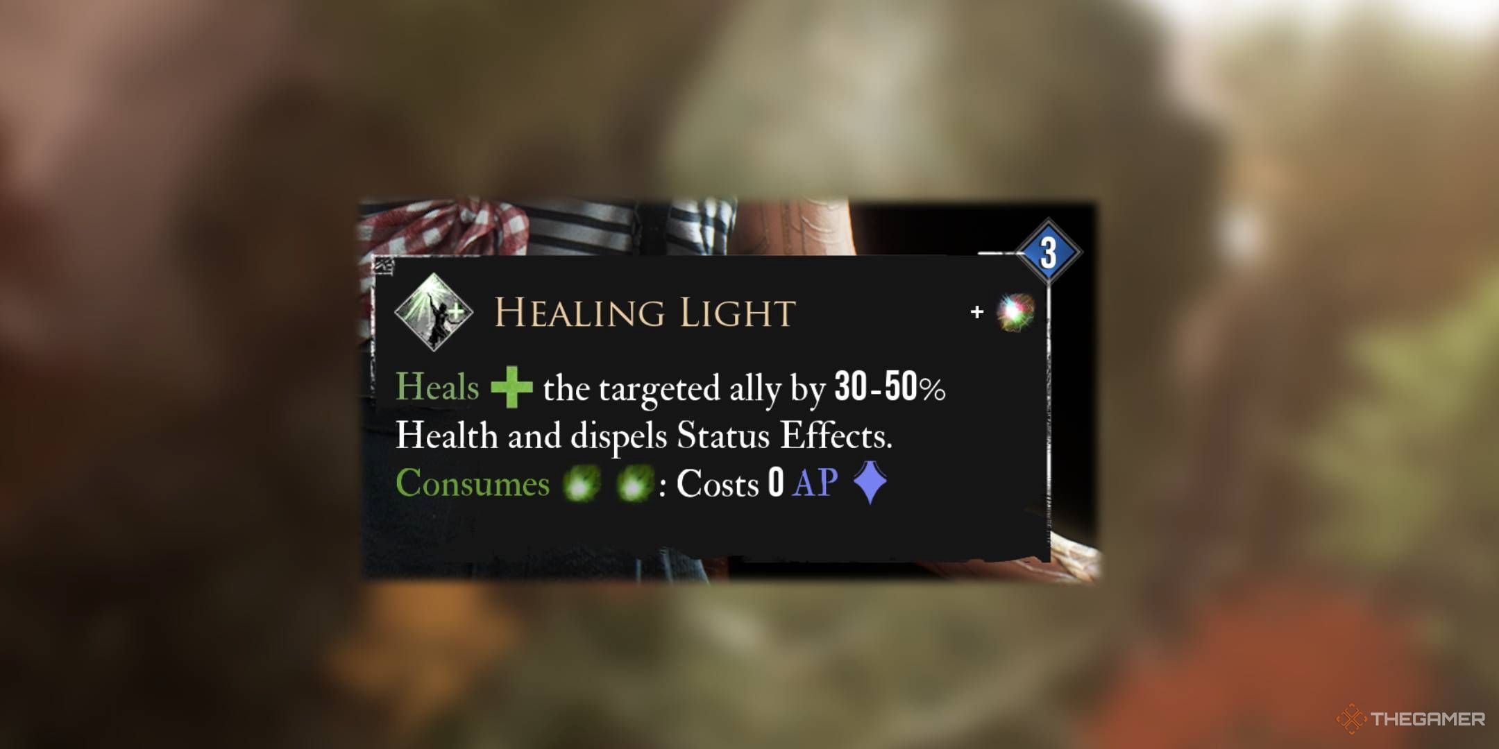 より少ない癒しの色合いにアクセスできるので、癒しの能力は不可欠であり、ヒーリング光はそのシンプルさと有効性のおかげで最高のものの1つです。 0 APコストで2つの地球の汚れを取引することは素晴らしいボーナスですが、3つのAPは比較的手頃な価格であるため、決して必要ありません。これに加えて、能力を使用するために得られる光の汚れと、ステータス効果を払拭するボーナスは、単に色合いを使用するよりもさらに良くなります。