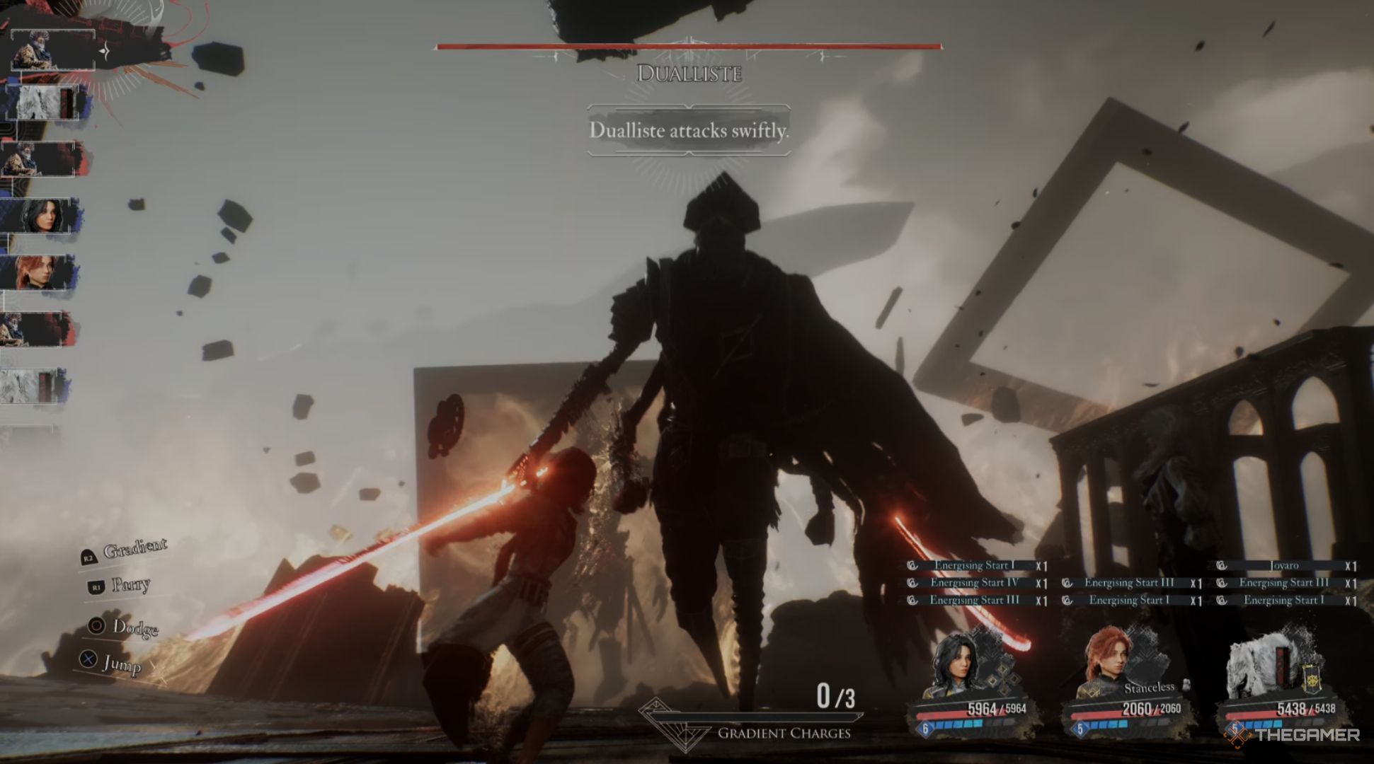 戦いの初期の部分で守備的にプレイし、生存に焦点を当てています。あなたが彼女の癒しなしでダメージを与え、それをクアーに保つことができるなら、それは素晴らしいことですが、あなたの目標はすることですできるだけ早く3つの勾配料金に到達します。次のような高コストのスキルを使用します燃えるキャンバスそして、前述の創造物が無効になります。パリーを逃したとしても、彼らはクレアの治癒因子をわずかに上回るのに十分なダメージを与えるだけでなく、追加された火傷はギャップをさらに埋めるのに役立ちます。