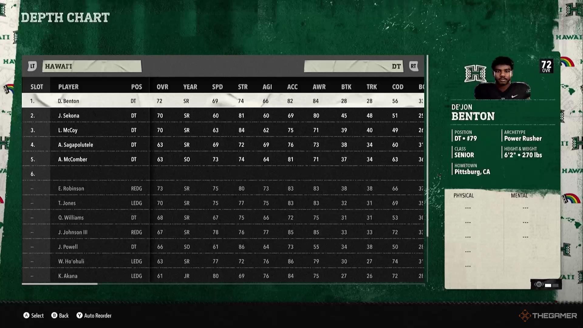 Demarkicus Davis | QB | fr | すべてのチームは、攻撃で成功を見つけるために、少なくとも何かが良いQBを必要とします。デイビスは許容速度を持っていますが、それよりも印象的なのは彼のスローレーティングです。。新入生として、これは新しいQBの採用を心配することなく構築できるプレーヤーです。 |