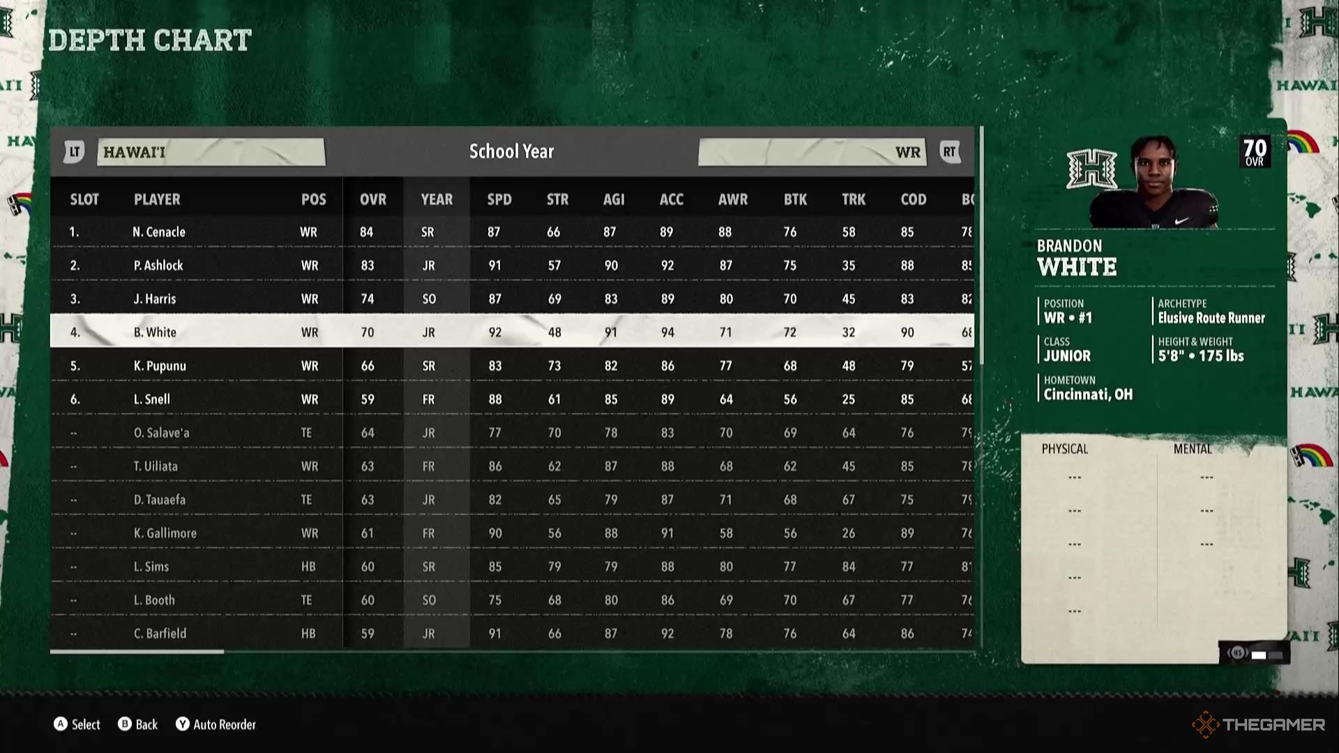 ビクタースノー | wr | ジュニア | ビクタースノーは小さいですが彼は速く、素晴らしい手とルートを走らせています。 QBでの選択に応じて、彼にボールを手に入れるのに苦労するかもしれませんが、可能であれば、彼はそれで物事を起こさせます。 |