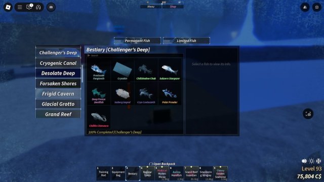 にあります(-4145、-11210、1395)、穏やかなゾーンは、マリアナのベールの最も低い地点です。潜水艦はもはや使用されておらず、すべての探査を徒歩で行う必要があります。レインボーリバーここに、完了するために必要な最後の魚のセットが含まれています落ち着いたゾーンbestiary。落ち着いたゾーンには2つのセクションがあるため、少し混乱しています。以下の獣肉は、最初のセクションのレインボー川専用です。