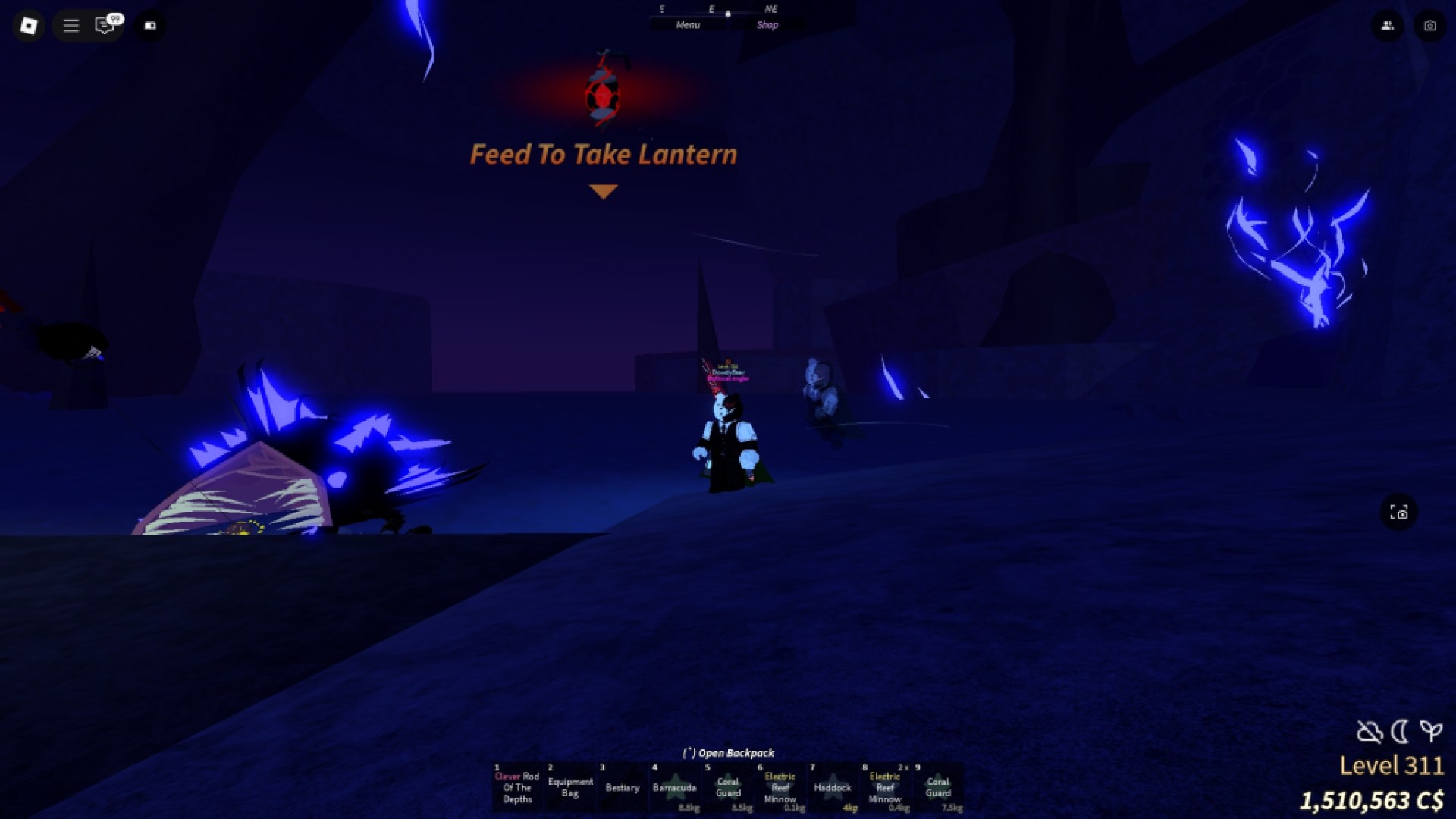 穏やかなゾーンは、嵐の前の文字通り穏やかなものです(この場合、嵐は深ssalな天頂です)。到着時にプールからキャッチできる魚が数匹いて、驚くべき永遠のプリズムロッド(なんと15,000,000ドル)を購入できます。
