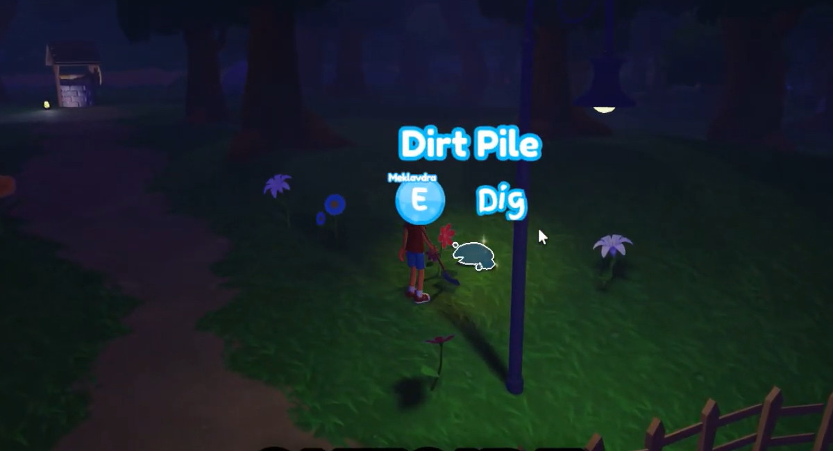 あなたの装備シャベルそして、市場を離れます。探す輝く汚れの山、市場の南の丘エリアで。 1つ掘り、市場に戻って汚れをワームに手渡します。もう一度、一度に1つの汚れの山だけを運ぶことができます。
