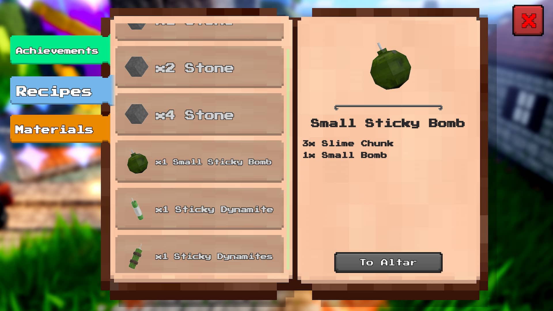 | 小さな粘着性の爆弾 | 3xスライムチャンク:スライムからドロップします 1倍の小さな爆弾:胸、大理石の鍋から略奪。商人から購入することができます |
