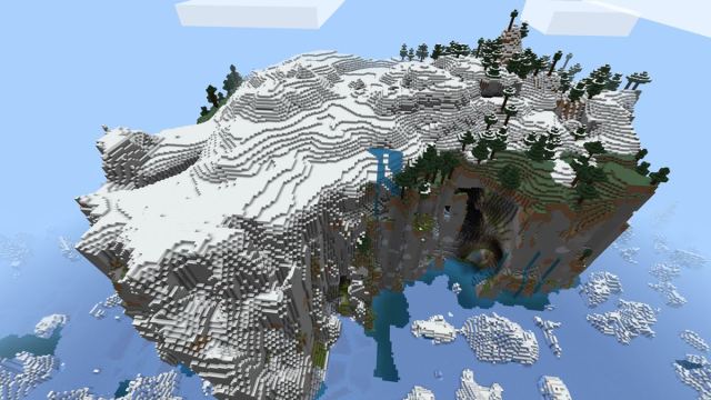 - 6967698017210692139:この種子は、基本的な素材を手に入れるために、いくつかの木で雪に覆われた巨大な凍った山を生成します。孤立した島にあるこの山には、巨大な洞窟があります。島は凍った水に囲まれており、生存は大きな挑戦になります。