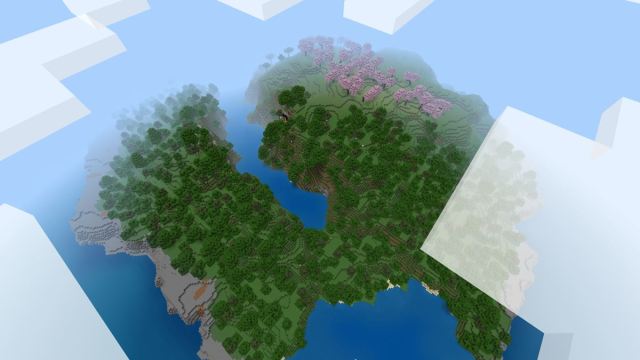- -2373184259785200509:この種子は、木と小さな洞窟システムを備えた島を生成します。島は水に囲まれており、生存を大きな挑戦にしています。