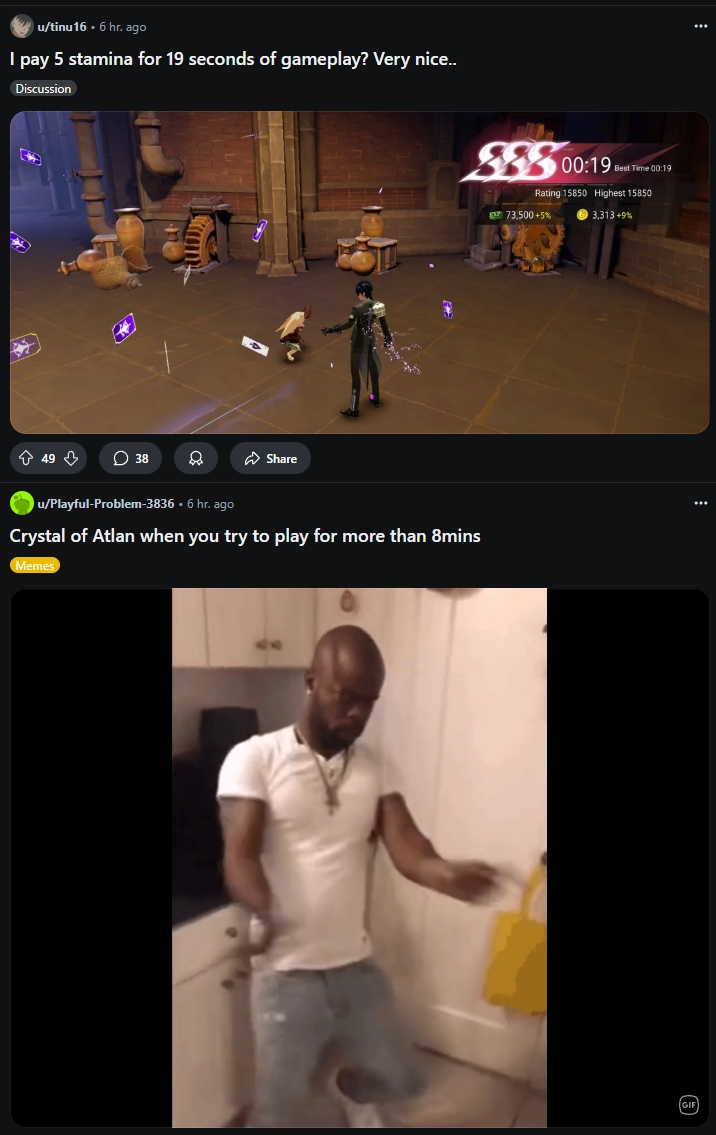 アトランの公式クリスタルのプレイヤー不和そしてredditシステムに関する彼らの感情について非常に声を上げてきました。エネルギーシステムがどれほどばかげているかについてミームを投稿している人もいれば、これが最終的にゲームを殺す方法を言っている人もいます。ゲームをプレイしてから10分以内にジュースを使い果たすことができるとさえ言っています。