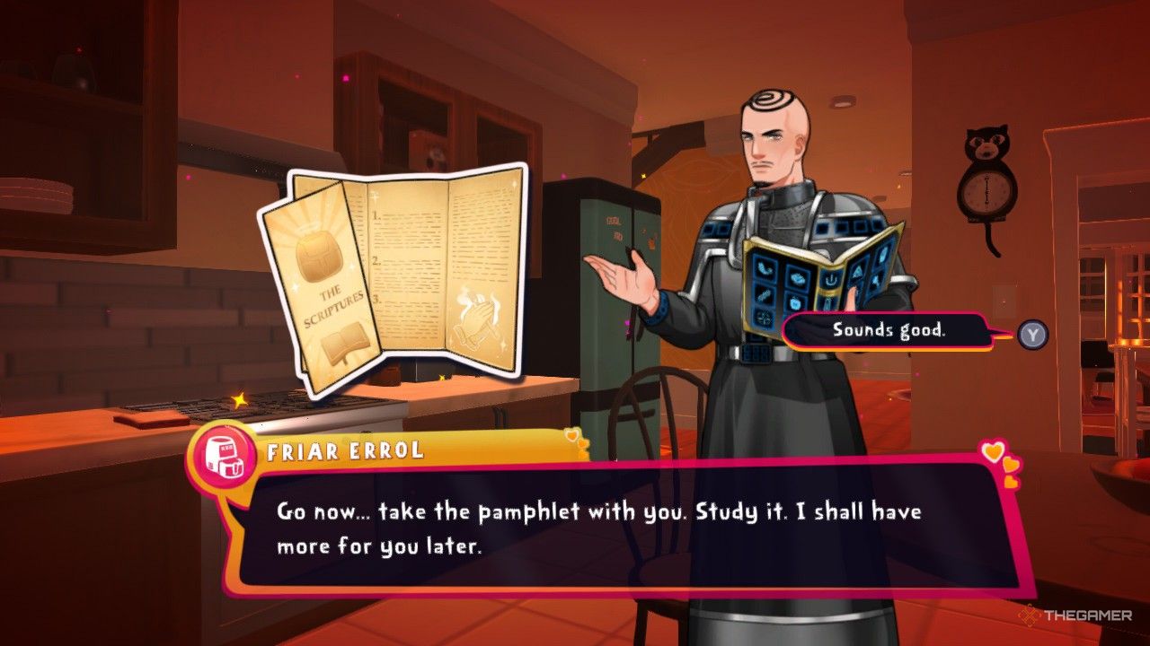 誤って誤って、すべての日付でFriar Errolと友達になってしまうのは驚くほど簡単です!あなたがいるなら防御エアフライで滑り落ちた彼のシーン中に数回。私たちは彼にステファンとルークと話をさせませんでしたが、私たちはまだエアフライドフードをサンプリングしてモッツァレラスティックを辞退させ、友達になったことをプレイしました。