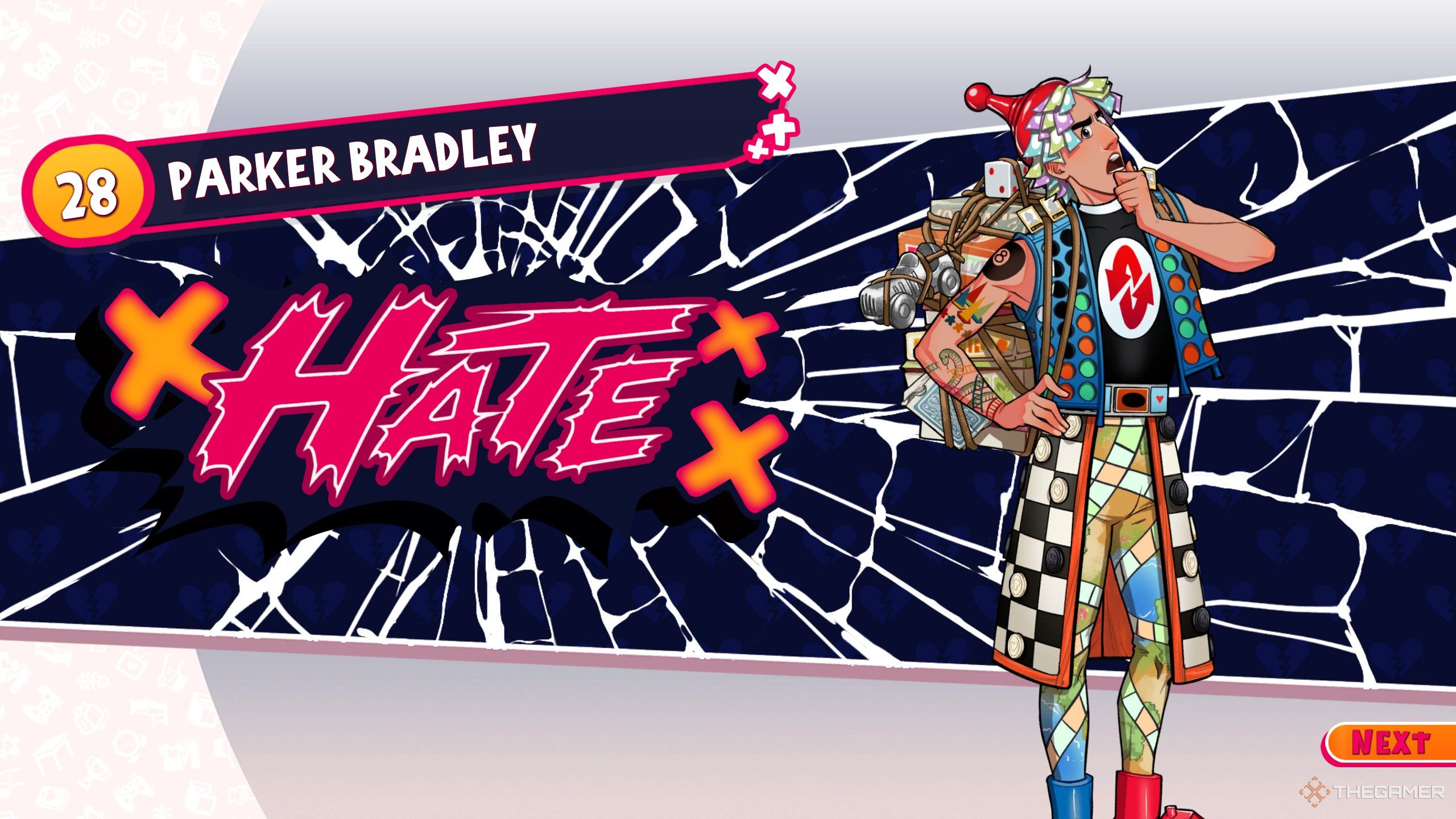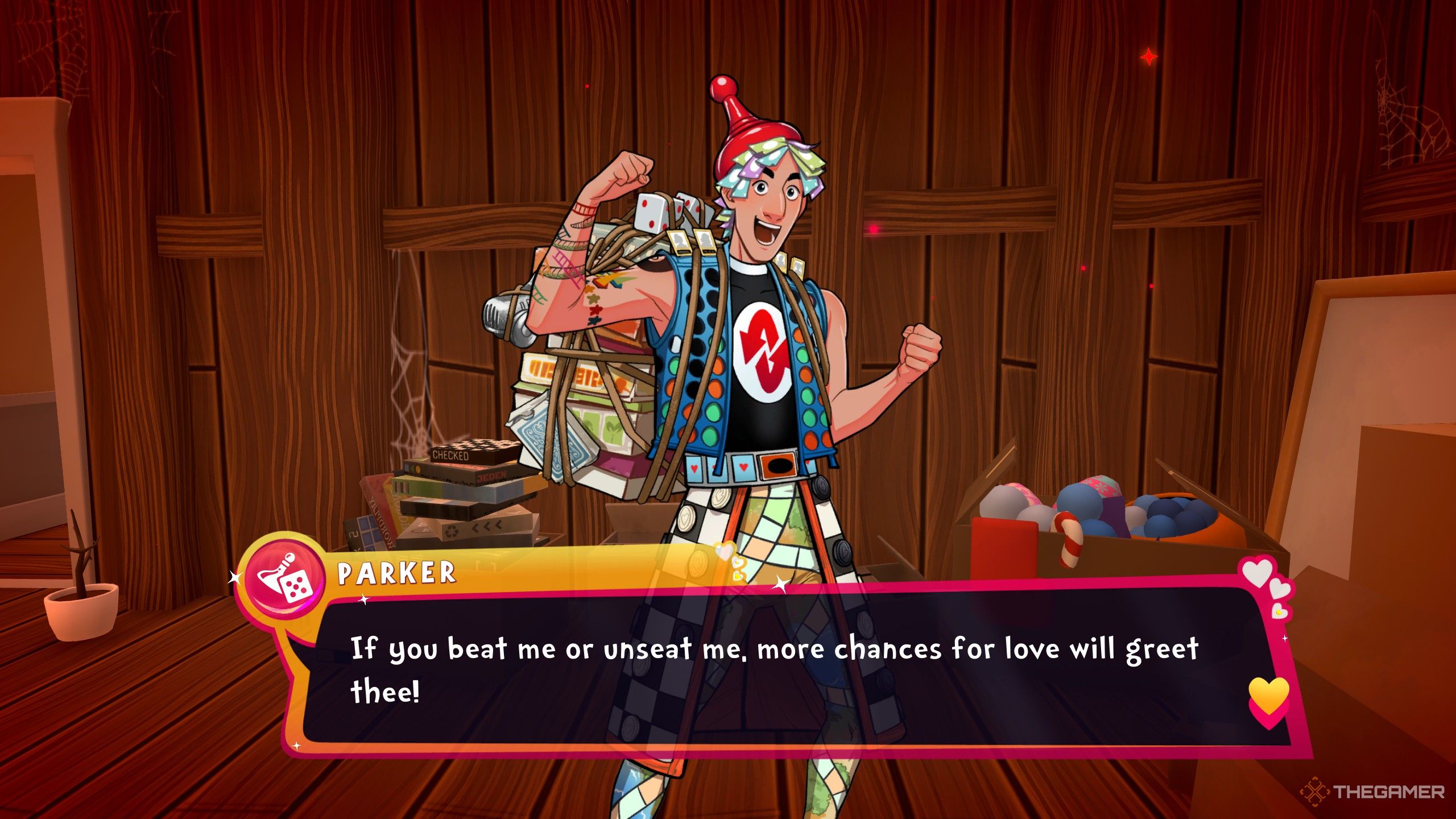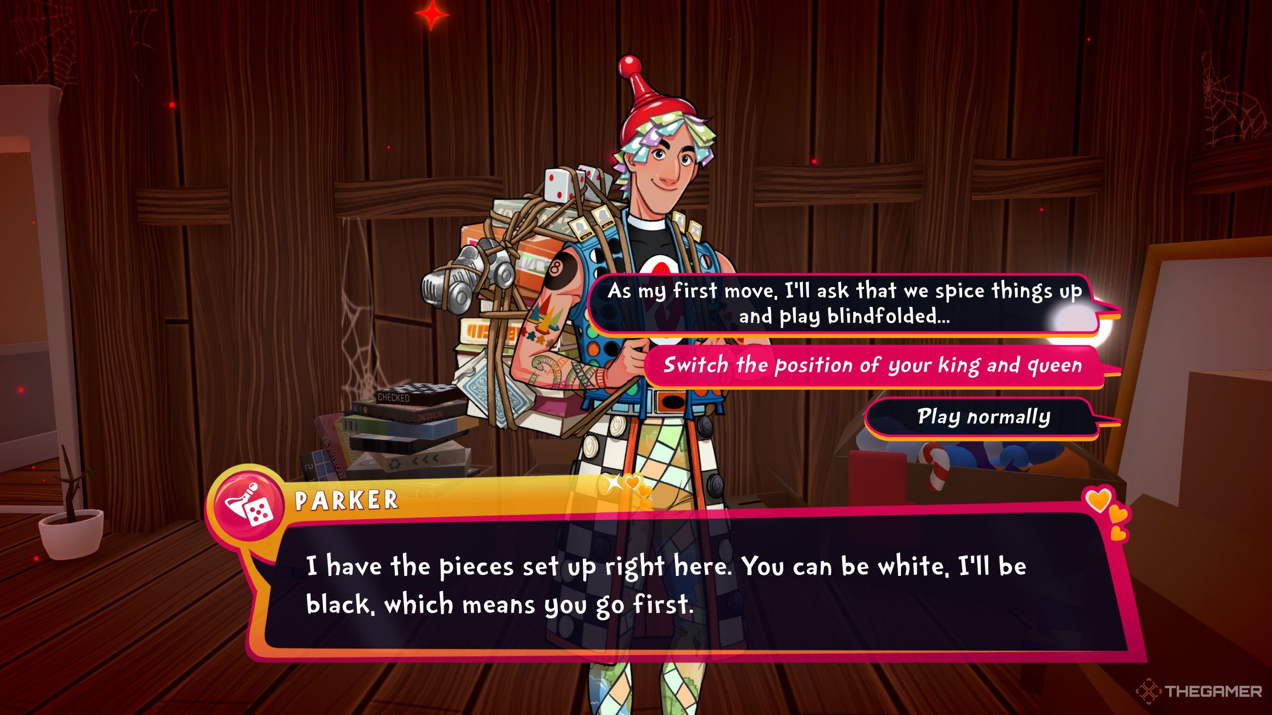 3つのボードゲームが完了すると、パーカーともう一度話し合う必要があります。早い段階で、彼はそれを確認しました彼とのあなたの関係は、実際にあなた自身の選択によって決定されていません、しかし、サイコロのロールによって。ですから、あなたは彼を愛することを厳密に選ぶことはできません。ただし、勝つことは助けになります。