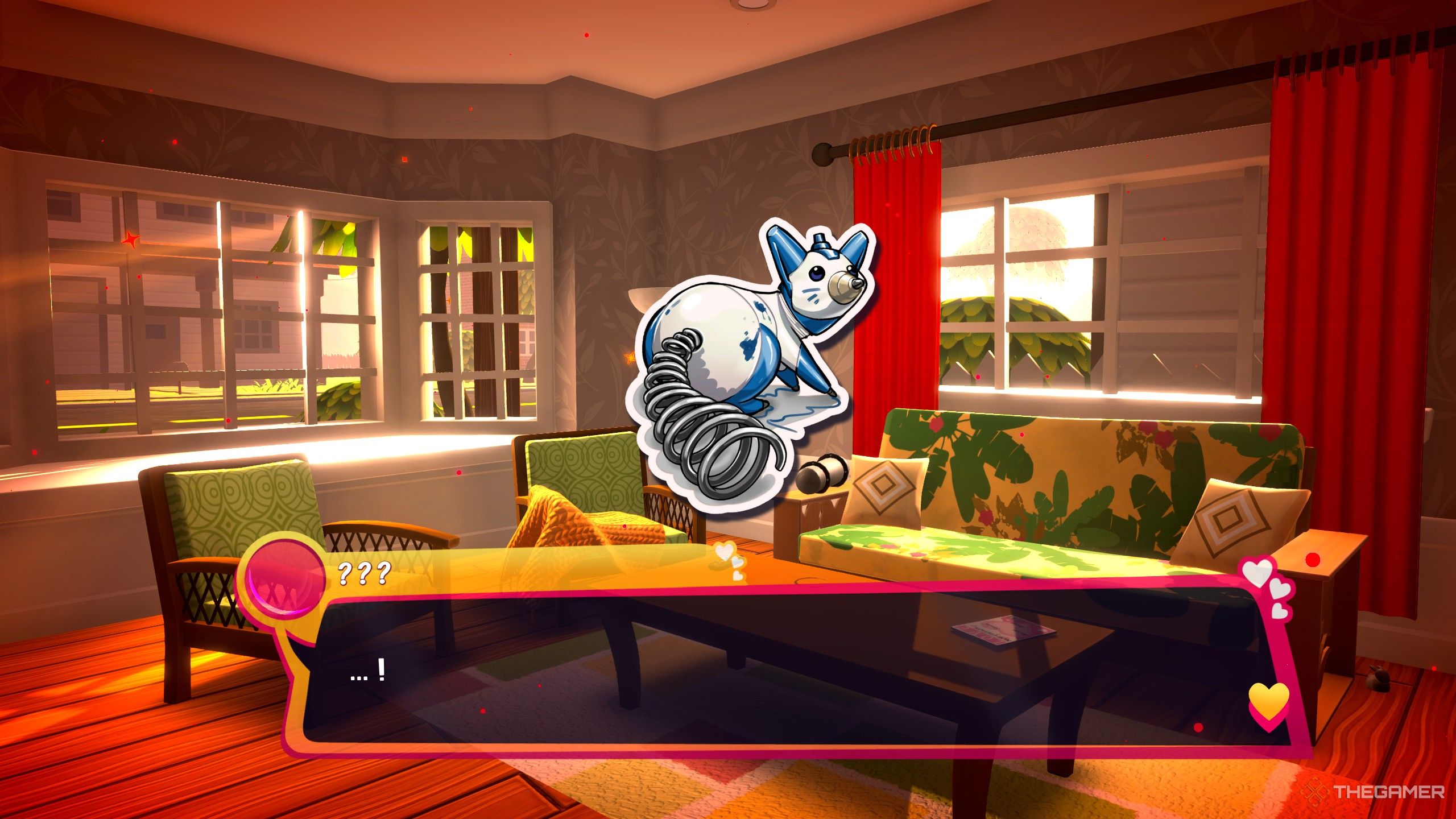 リビングルームで、テレビが立っているテーブルをチェックしてください。そのセクションの1つには、コンソールがありますが、その向きのコンソールにはコンソールがあります。テレビのリモコンのように見える小さな塊。これと対話して、スプリングテールを見つけます。前と同じように、翌日にそれらをマテオに戻して、検索を続けてください。