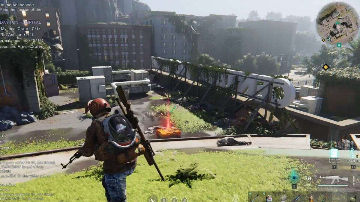 神秘的な木枠も病院にあり、屋根の上にあります。階段が2つあります。1つがブロックされている場合、もう1つは開いているので、すぐに上がってください。最終的には屋根になります。ここに右に行くだけで、神秘的な木枠が壊れたヘリパッドの前で右側にあります。