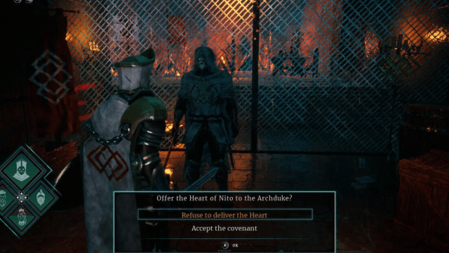 警備員と話すときに2つのダイアログオプションがあります。選択します 「契約を受け入れてください。」「心を引き渡すことを拒否する」を選択しないでください。そうしないと、選択した死の達成から自分を締め出します。