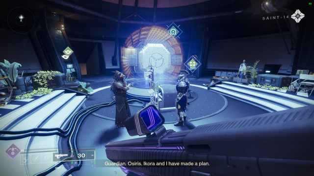 ヘルムに戻ってアプローチに近づくと、いくつかのトリガーがトリガーされます聖14とオシリスの間の対話。聖人は彼とイコラが作り上げた計画を漏らし、オシリスにこれが唯一の先進的な方法であるかどうかを疑問視した。彼が考えていることに関係なく、聖人は彼の決心を作り、あなたの両方を尋ねましたVexネットワーク内で彼に同行します最後のミッションのために。