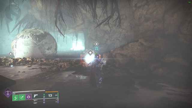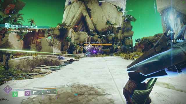世話をする必要がある3つのミノタウルスに囲まれたデータのビームが表示されるまで、頭を下げてください。データのビームと対話し、アーカイブセキュリティに違反している間、ゴーストをVexのいくつかの波から守ります。
