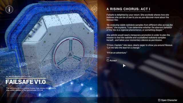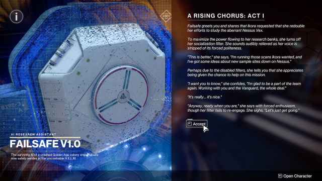 ステップ6 Rising Chorus QuestはただですFailSafeがデータ分析を終了するのを待っています、Bungieが毎週のスケジュールに合わせてエピソードと季節の探求をタイムゲートする方法です。