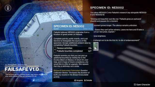 - 手順4&5:Destiny2のFailSafeで研究標本を取り上げて話し合います2