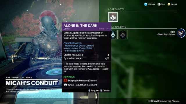 このクエストの最後の課題は、いくつかの1つを完了することです淡い心臓の6つの嚢胞。失われた幽霊の位置と、暗いクエストインスタンスでそれぞれだけで完了する必要がある嚢胞の両方回転します、各嚢胞には独自のルールセットがあります。とはいえ、構造は同じままです。完全な目的、ボスと戦い、幽霊を癒します。