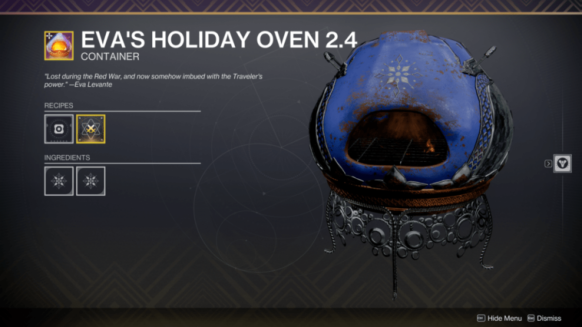 休日のために物事を始めるために、ガーディアンは塔に向かい、エヴァ・レバンテのセットアップを訪れることができます。プレイヤーが以前に夜明けに参加したかどうかにかかわらず、EVAはお祭りに参加するために必要な重要なアイテムであるEva's Holiday Ovenを提供します。