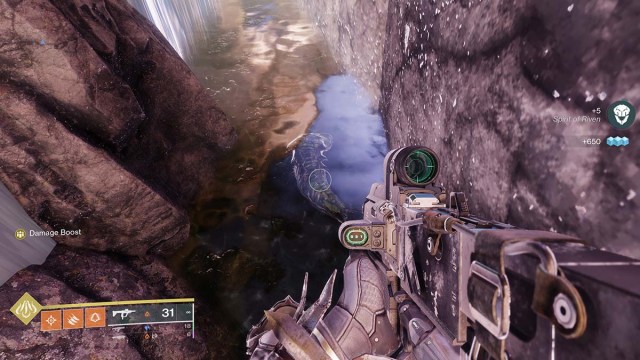 私たちはついに南の崖ではない場所に向かっています。代わりに、ワームホストチェストによって病棟の右側の滝に行き、その後ろに行きます。ワームはあなたの足元のプールにあるべきです。