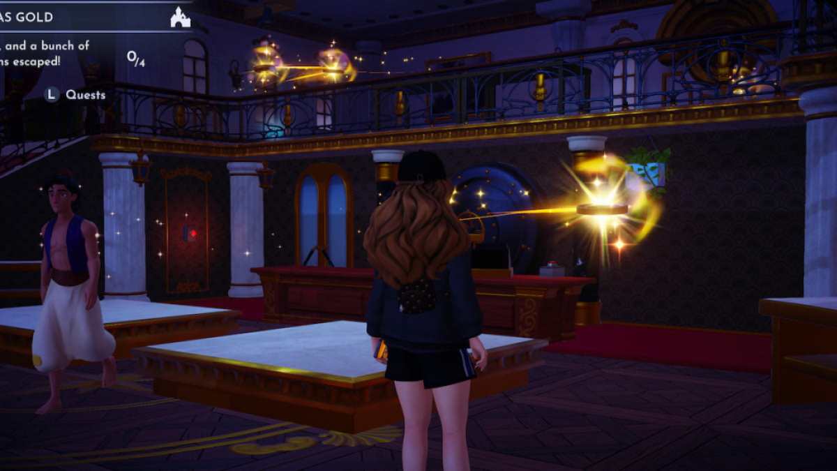 セキュリティシステムのテストフェーズを解決したので、Scrooge McDuckの金庫に「侵入」し、いくつかの魔法の飛行コインが表示されます。走り回って、経験についてアラジンと話す前に彼らを捕まえてください。