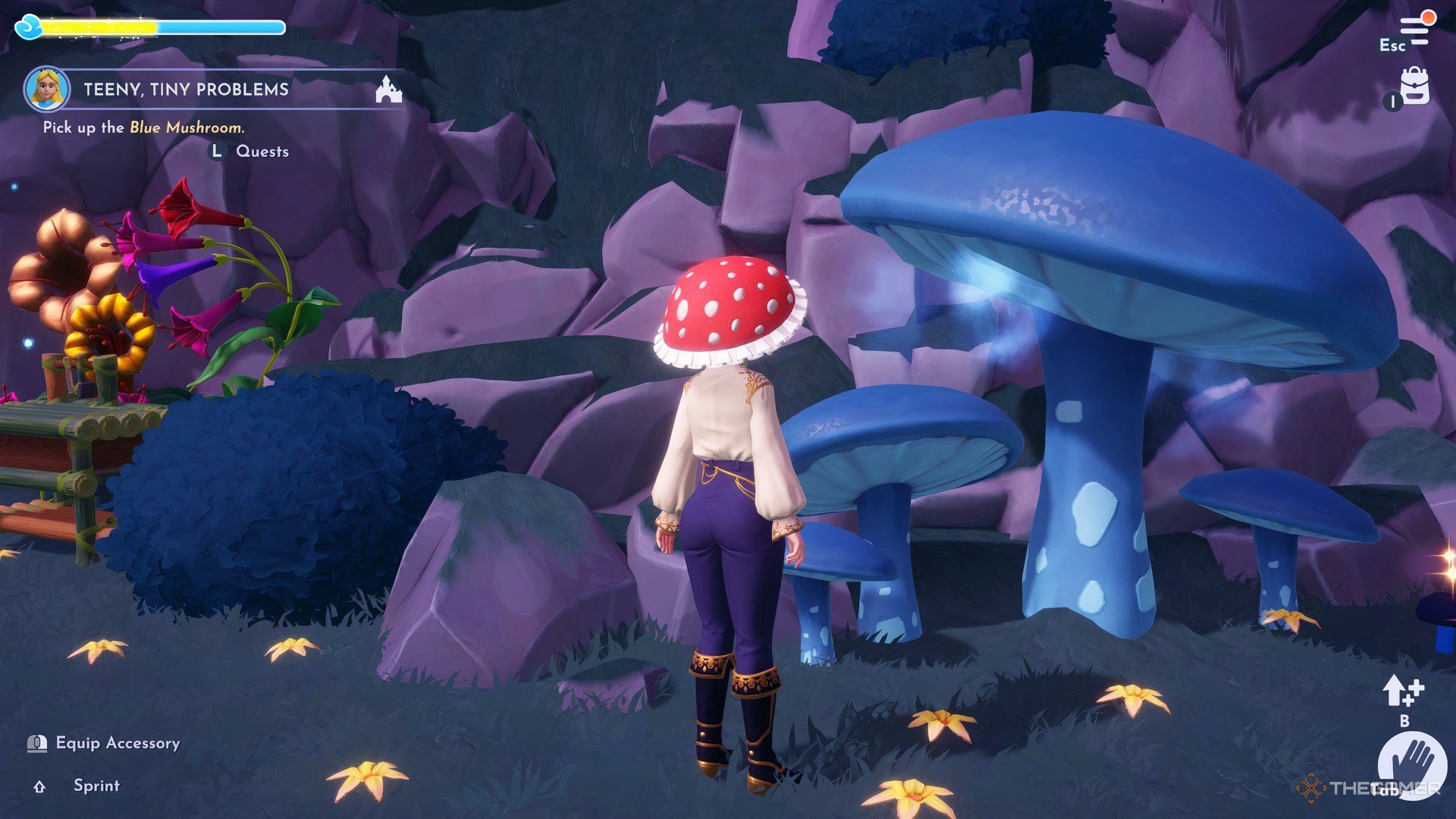 もう一度、最初のエリアに戻り、煙を分泌する巨大な青いキノコとミスト。青い服を着て元気づけてから、落とすキノコを集めます。