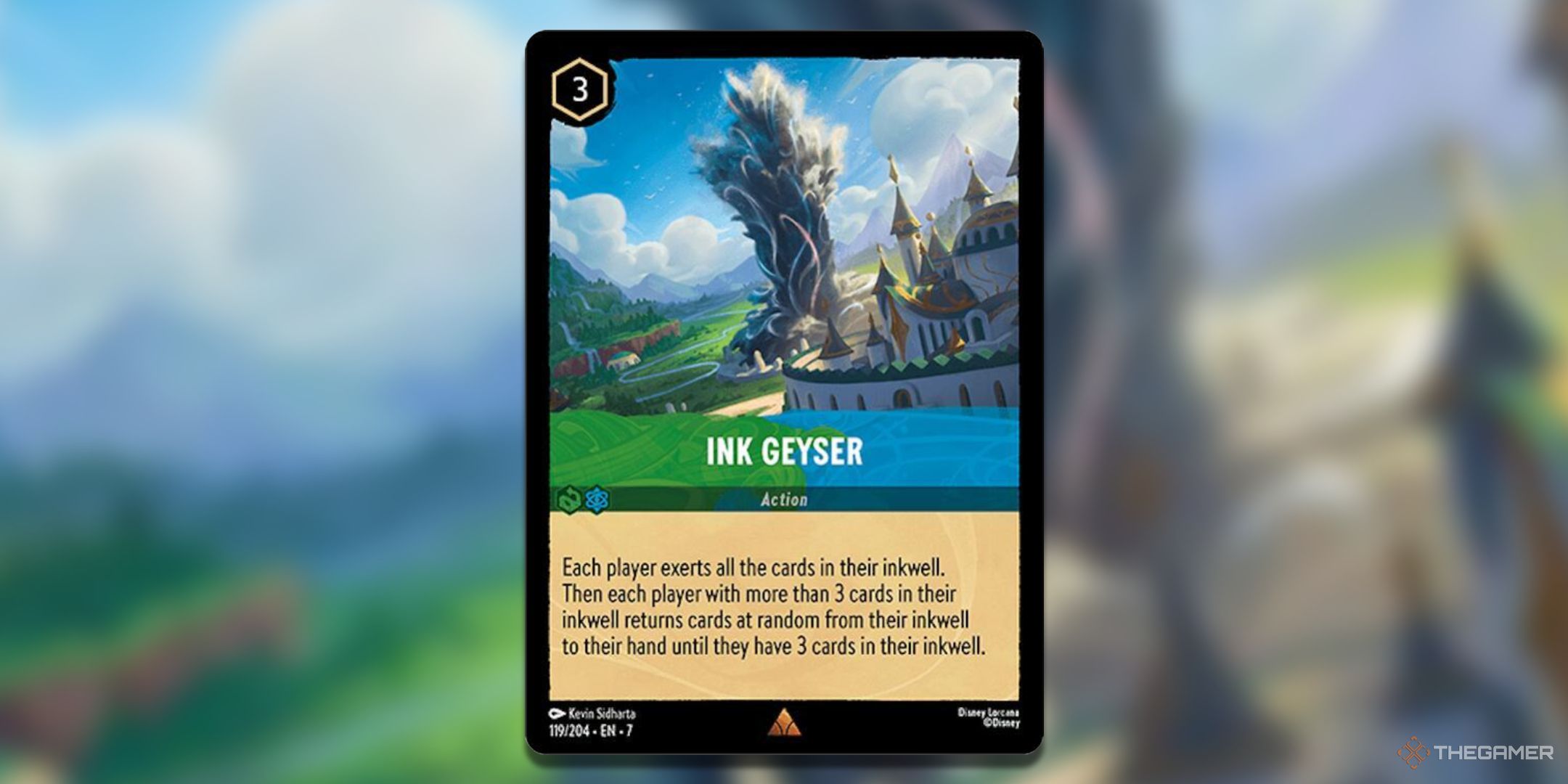 Ink Geyserは、カードの色にデュアルインクメカニックを利用しています。このエメラルドサファイアアクションにより、相手のインクウェルをさらに制御できます。 3インクの犠牲を払って、すべてのプレイヤーのインクウェルを発揮して、カードのバウンスを手に戻すことができます。