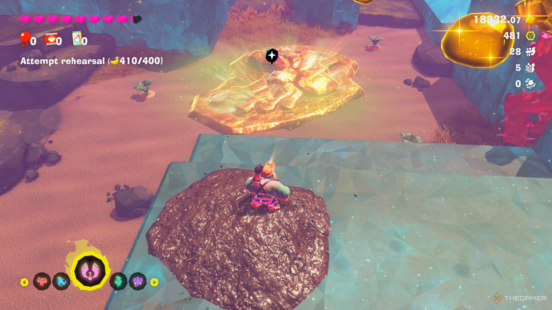 落ちるに中心これの島、そしてあなたの道を作ります外によるパンチング岩を通してピンクの鉱山を見つけてください。これらをオフにして開きます地下室を通過します下に。ここ、打つピンクの鉱山にネプチュナイトの壁それを破壊するために。