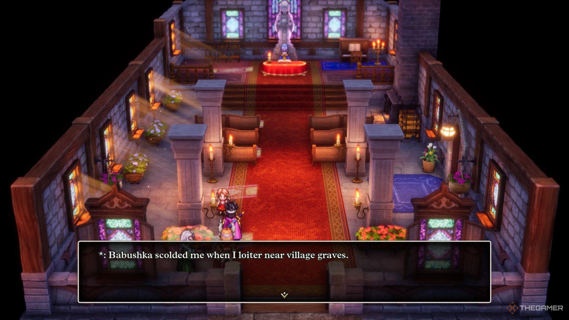 平和で静かなドラゴンクエスト3の世界のように見えるかもしれませんが、それは表面の下に多くの不安を隠しています。ほとんどの人は、大聖人のバラモスの漠然とした概念しか持っていませんが、子どもたちでさえ彼の存在に脅かされていると感じています。伝説的なオルテガがもはや彼らを保護するためにいないので、人々はさらに脅かされていると感じています。