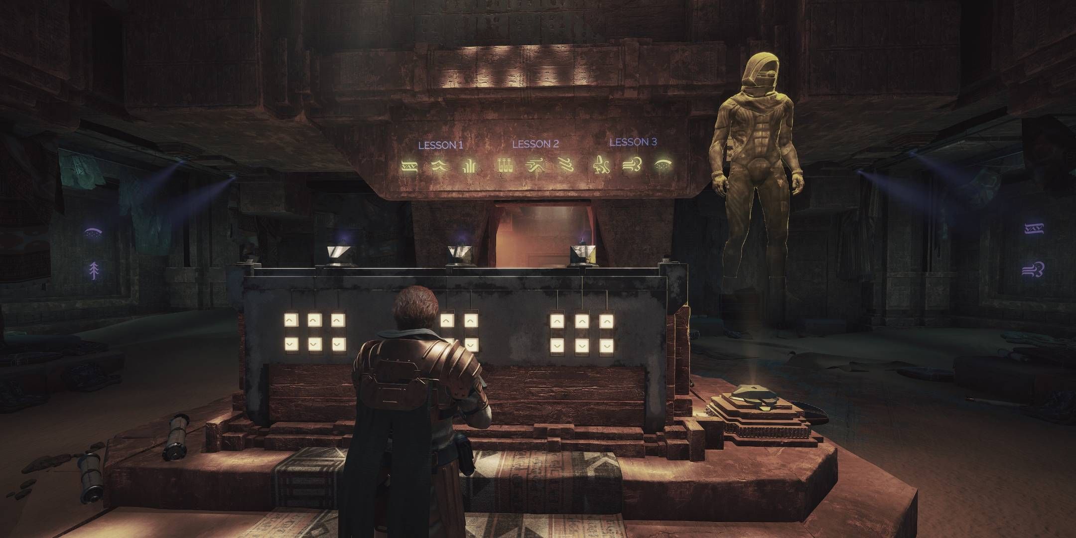 Sietch Ta'labに入ると、ARIと呼ばれるNPCに会います。彼らは、タラブの後ろの伝承のいくつかについてあなたに話し、あなたにシエッチを探索するように指示します。胸がたくさんあるので、必ず部屋をチェックしてください。シエッチの奥深くに冒険した後、最初のパズルに遭遇します。