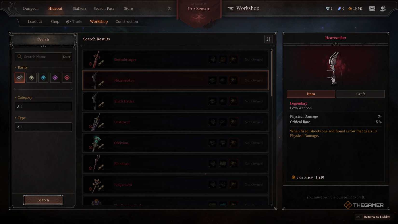Heartseekerは理想的な目標として介入します。もう1つのクラフト可能な伝説的な弓はブラックハイドラですより高いレベルに達し、エンドゲームに向かうとき、