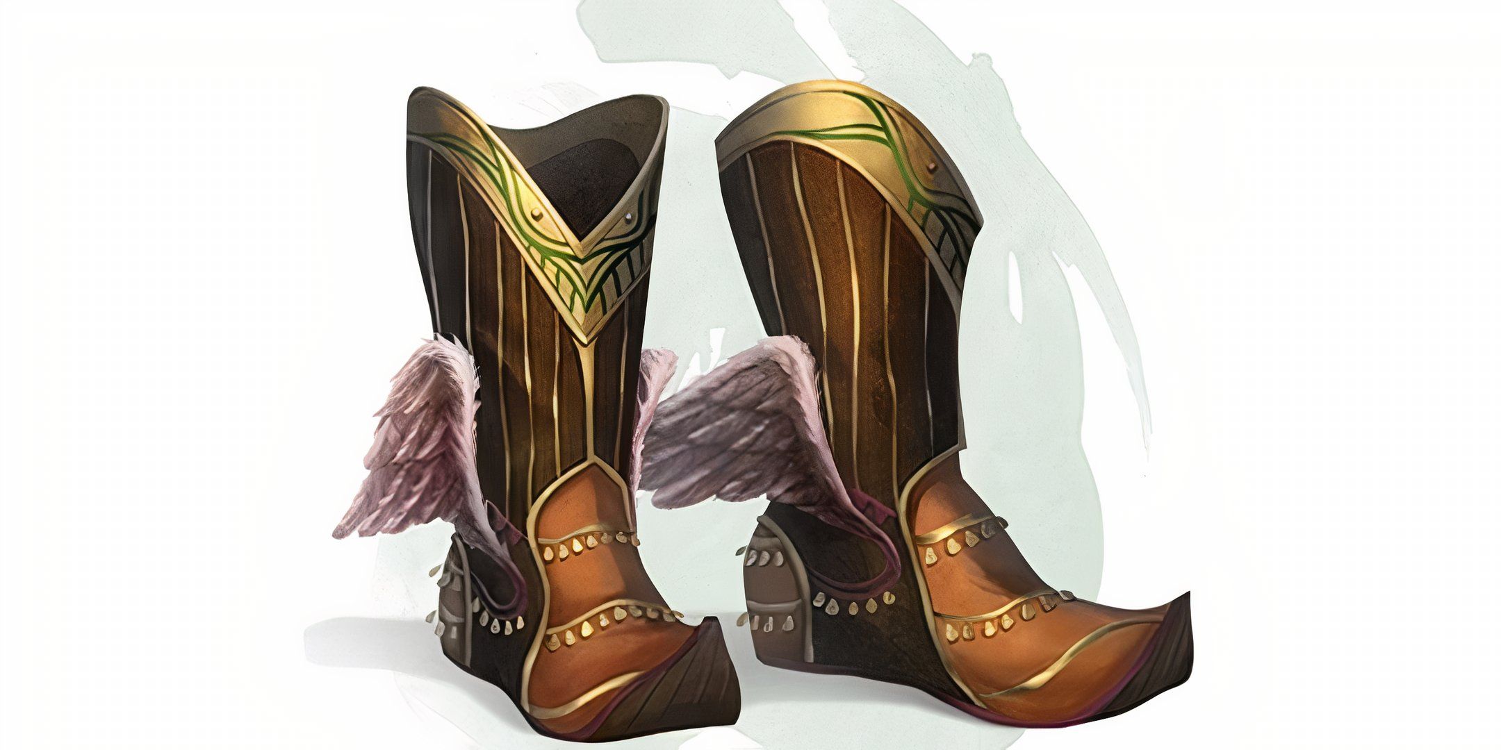 これらのブーツを人に持っていて、それらに調整されたとき、あなたはそれらが固体の表面であるかのように水域を歩くことができ、したがって、あなたがそれらを通過することによって遭遇するかもしれない困難な地形を無効にすることができます。水域に落ちて転倒ダメージを受けると、ブーツは着陸を柔らかくすることで1d12の損傷を減らすことができます。