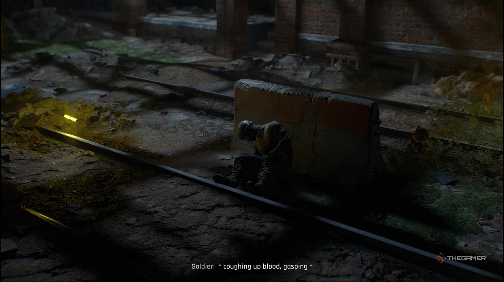 あなたのサバイバーセンスがアクティブで、別の線形パスに沿ってナビゲートしますそれはあなたを一緒にドアに連れて行きますその周りの血。それを開くことによって、カットシーンが始まります倒れた兵士とやり取りし、獣との短い出会いあなたは探しています。