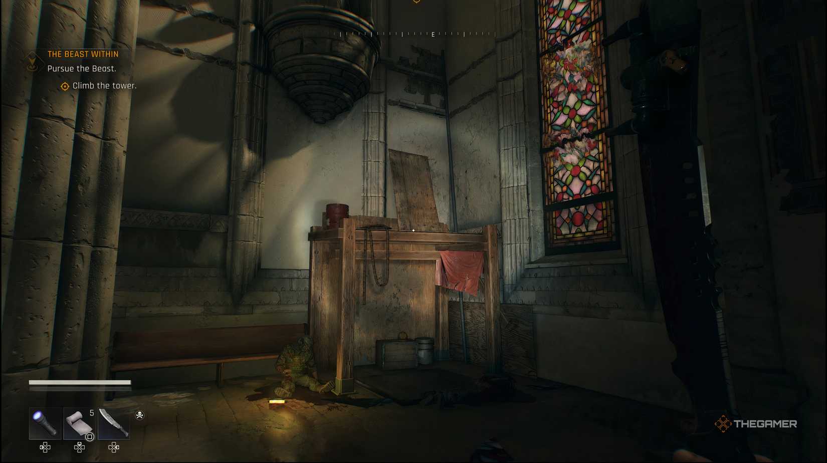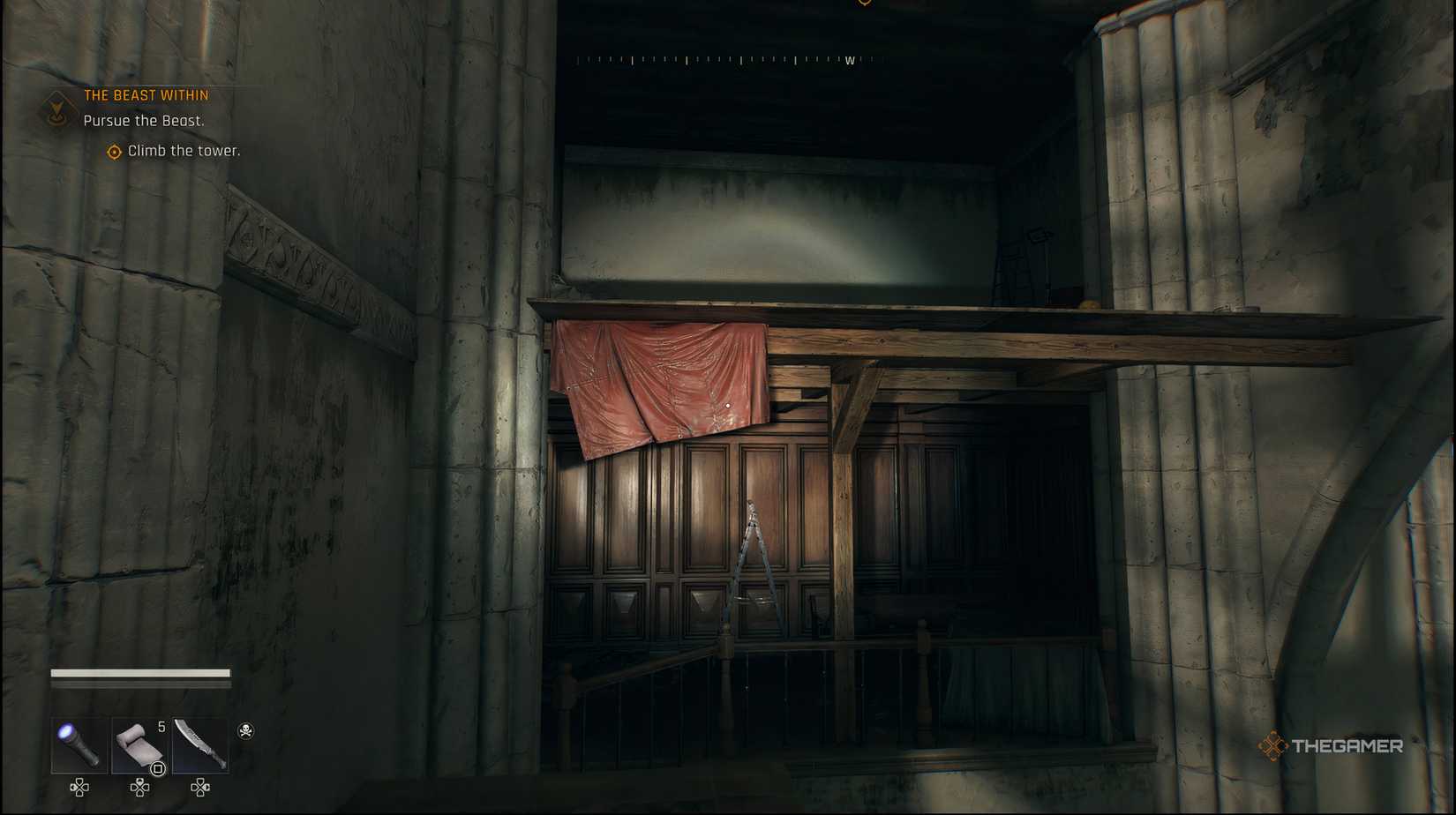 この時点から昇るのは簡単な部分です。ただ目にしてください小さな木製のプラットフォームそれはあなたを可能にします教会の屋根に着く。あなたが出るとき、それは昼間になります、そして、あなたはミッションの次と最後の部分も開始します。列車のトンネルの位置。