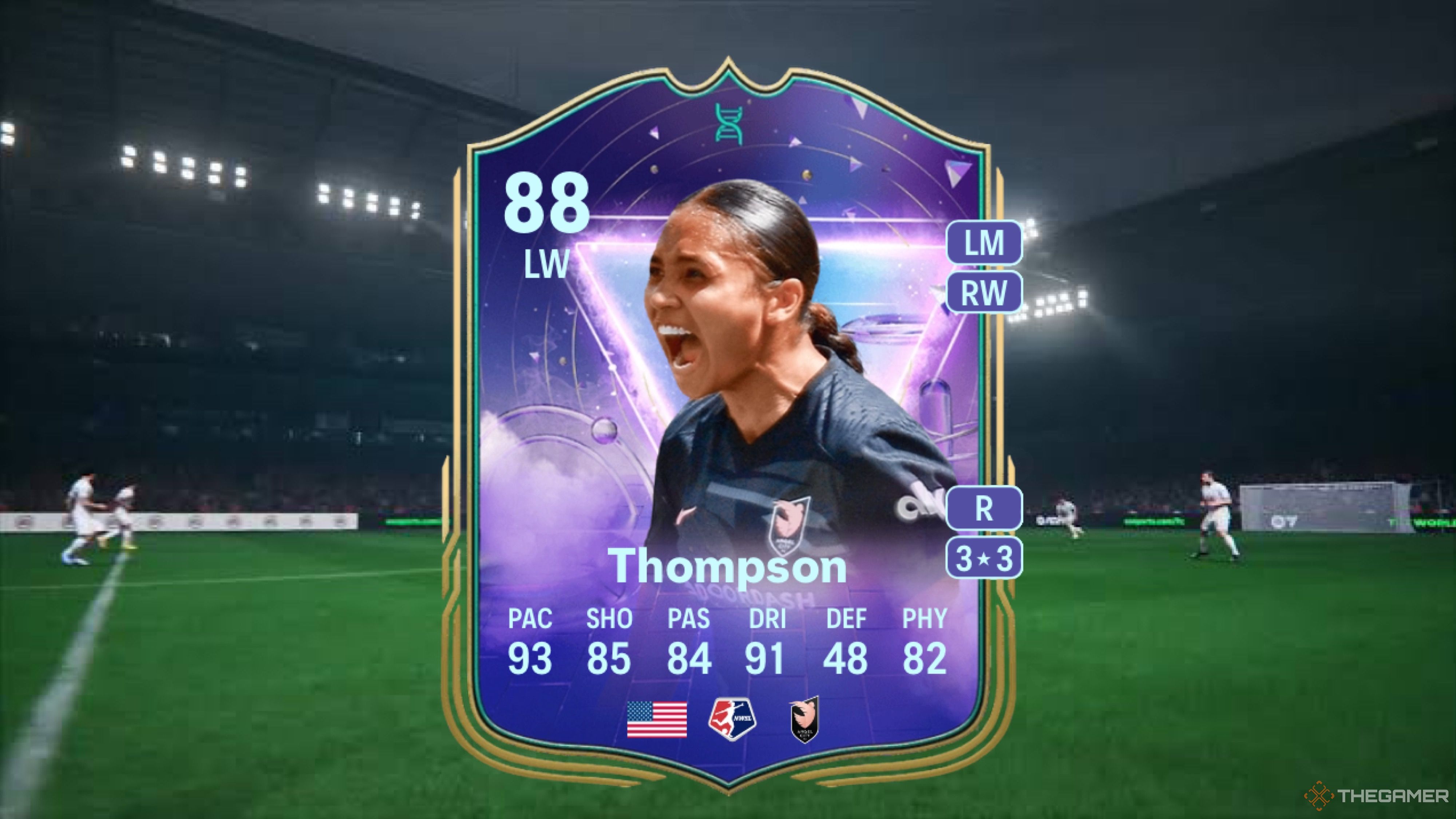 Alyssa Paola Thompsonは、将来のStar Evolution Cardを獲得した3人の女性プレイヤーの1人であり、彼女のカードは、彼女をゲームで最高の左翼の1人に変える可能性のある大きな攻撃の可能性を持っています。このカードをアップグレードすると、汎用性の高いプレーヤーが手にあり、左翼、左ミッドフィールダー、または右ウィンガーとして彼女をプレイすることを選択できます。