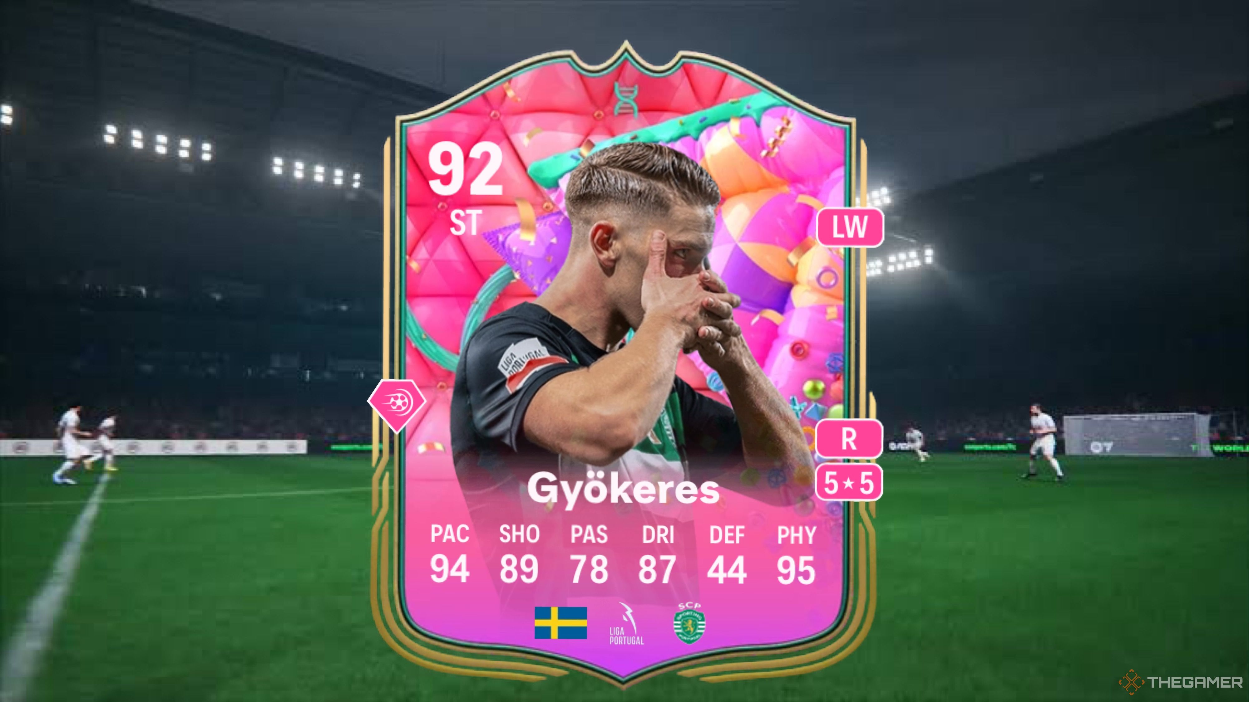 ゲームのトップストライカーは最高の評価の1つであり、彼のカードを選択してチャレンジを完了した後、92ペース、93の身体性、90ドリブル、90の射撃、88パス、41のディフェンディング、5つ星のスキルの動き、5つ星の弱い足の精度でGyökeresカードを取得します。