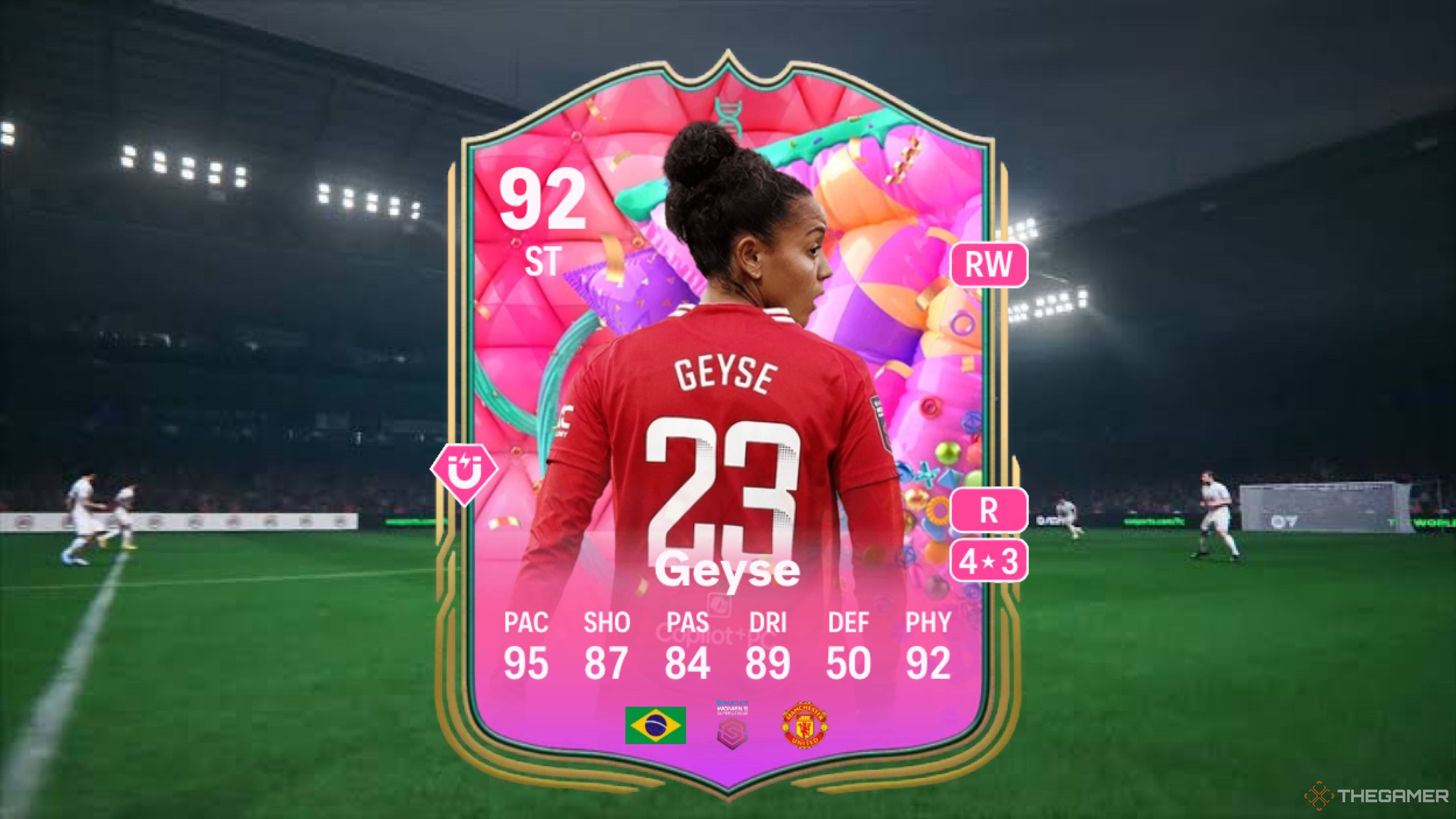 Geyse Da Silva FerreiraはNWSLのトッププレーヤーの1人であり、彼女のFUTバースデーカードにはピッチのさまざまなポジションで提供されることがたくさんあります。彼女は、ストライカー、右ウィンガー、または右のミッドフィールダーとしてプレイする汎用性とスキルを持っています。そして今、進化を経験した後、攻撃中の中盤のポジションが彼女のカードに追加されました。