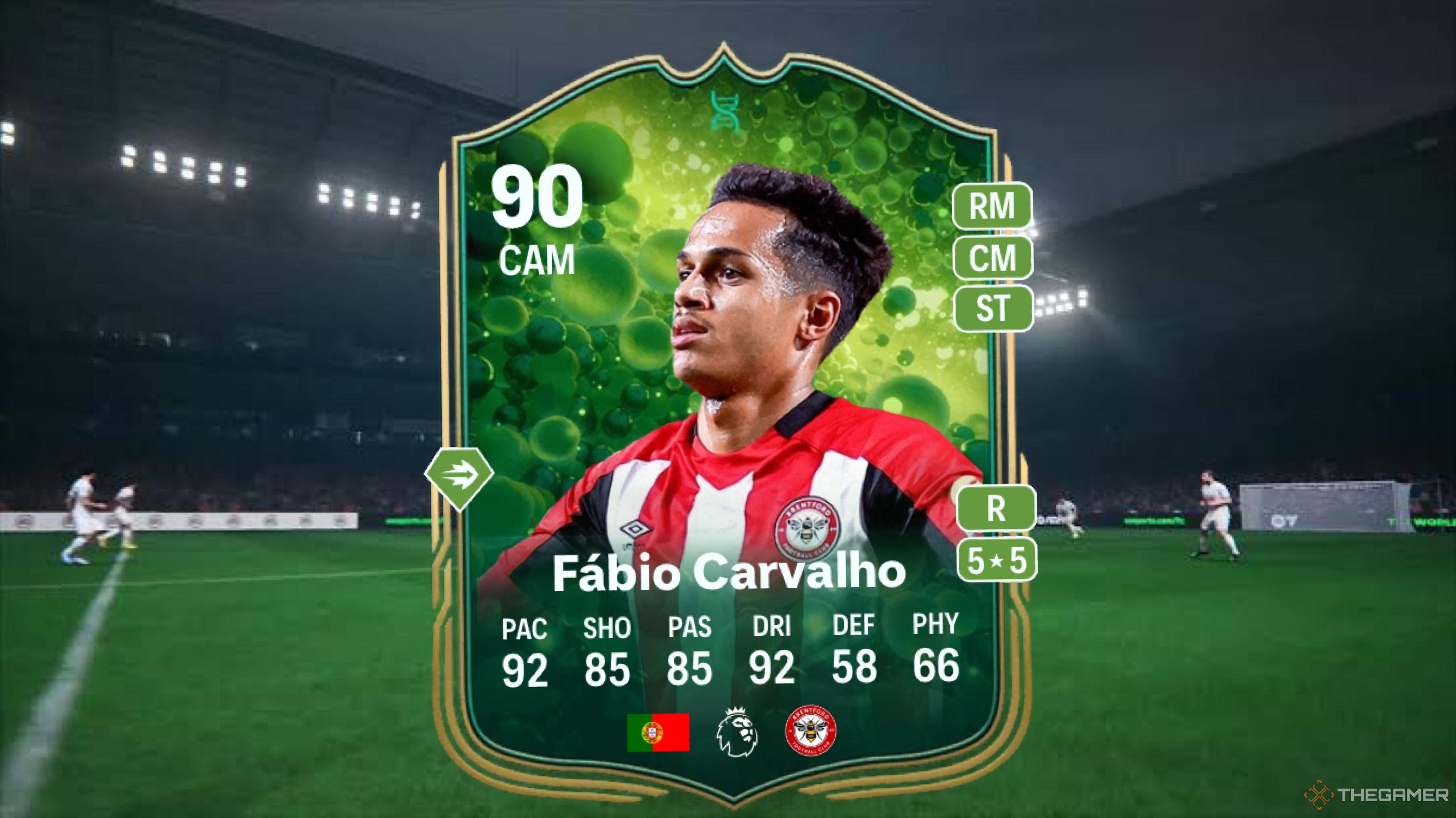 素晴らしい輝きを得るもう一人の元リバプール選手は、ファビオ・レアンドロ・フレイタス・グーヴェイア・カルヴァリョであり、彼の新しいカードは彼をゲームで最高の若い攻撃ミッドフィールダーの一人としてランク付けしています。彼は2024年にクラブを去り、RBライプツィヒ、ハルシティ、ブレントフォードなどのクラブに融資を行っています。