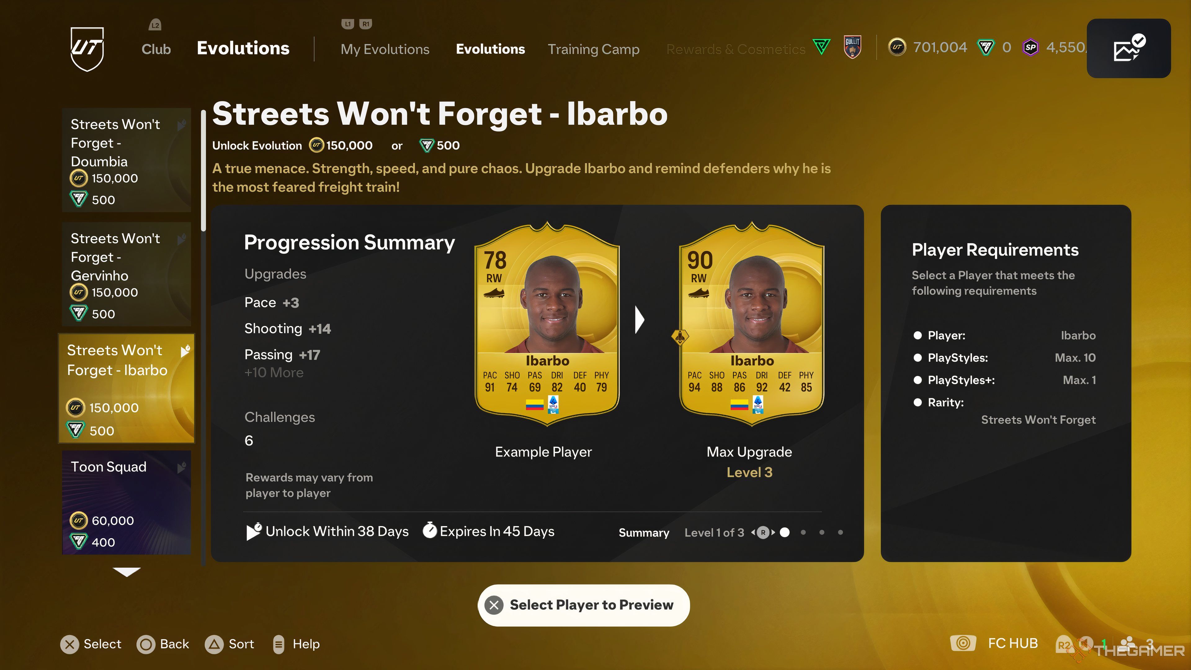 Gervinho Streetsのロックを解除するには、EA Sports FC 25の進化を忘れないでください。この特定の進化を選択し、150,000コインまたは500 FCポイントを使用します。その後、進化の3つのレベルすべてを正常に完了する必要があります。以下はの詳細です各チャレンジレベルの要件: