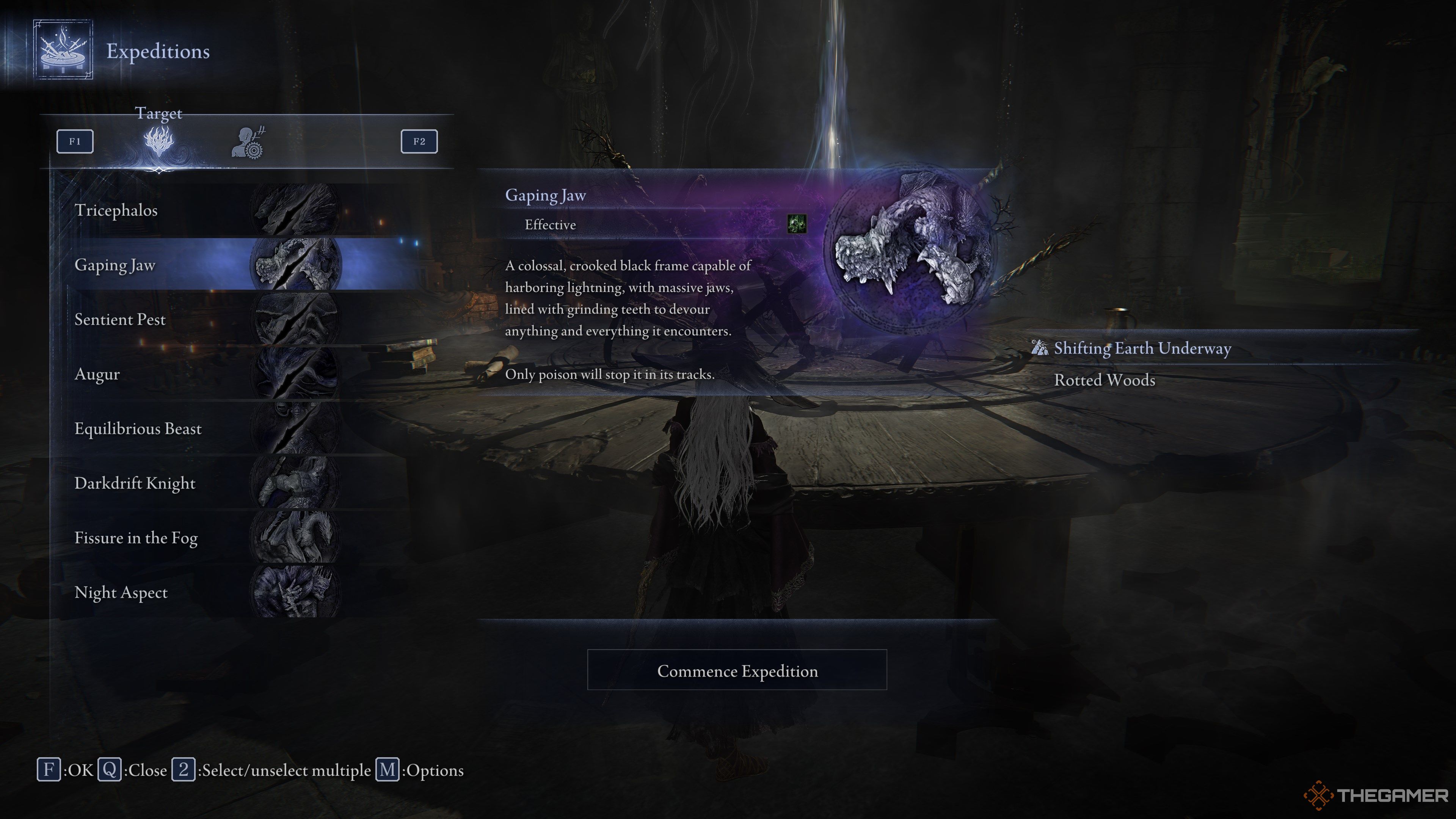 、非常に脆弱です狂乱ダメージ。遠征の開始時に熱狂的な武器を付与する遺物をまだ見つけていませんが、その統合が存在する場合、ここでは最適です。代替手段を探している場合は、お勧めします毒またはscar色の腐敗の損傷その代わり。このボスには複数のメカニズムがあり、呪文があなたを攻撃している間、数秒間その場に立っています。毒やscar色の腐敗状態の効果でボスをデバフできる場合は、戦いを通して大量の受動的なダメージを与えます。