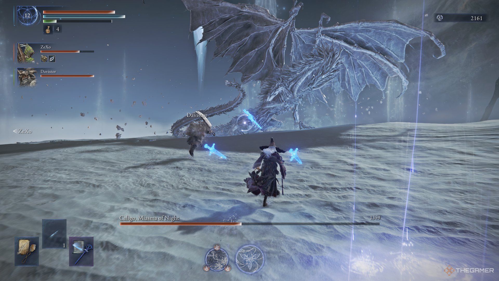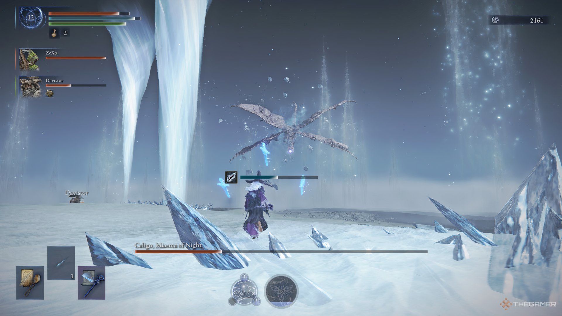 凍結飛行攻撃 | 前方に充電して、カリゴは自分自身を前に発射して空中に立ち上がる前に、長いro音を出します。彼はアリーナを丸で囲み始め、星を集めて霜を彼の翼に入れます。その後、彼は単一のプレイヤーを標的にし、それらに向かって飛び、氷の結晶の弾幕を解き放ちます。彼はこれを2回行い、クラッシュ着陸と最終攻撃で滑ります。停止すると、彼は数秒間続く翼から氷の3番目の最終的な弾幕を解き放ちます。 提案された読み:Elden Ring Nightregn:Gawing Jaw Night Lord Loss Guid | カリゴに閉じ込めてくださいこの飛行中に彼のパターンを見る。彼があなたを標的にしているなら、横にロールをかわす準備をします彼が両方の時代に来るように。彼の最後の攻撃の間、誰もがすべきです安全なエリアに入る準備をしてください。最終的な弾幕はランダム化されていません。つまり、意味します一貫した安全なエリアがあります弾幕のパスを確認したら。 |