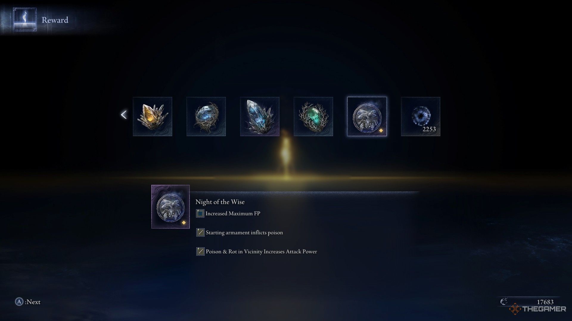 内部では、できますNightFarerを選択しますあなたの選択のとチャリスを切り替えるか、新しい遺物を装備しますここで。