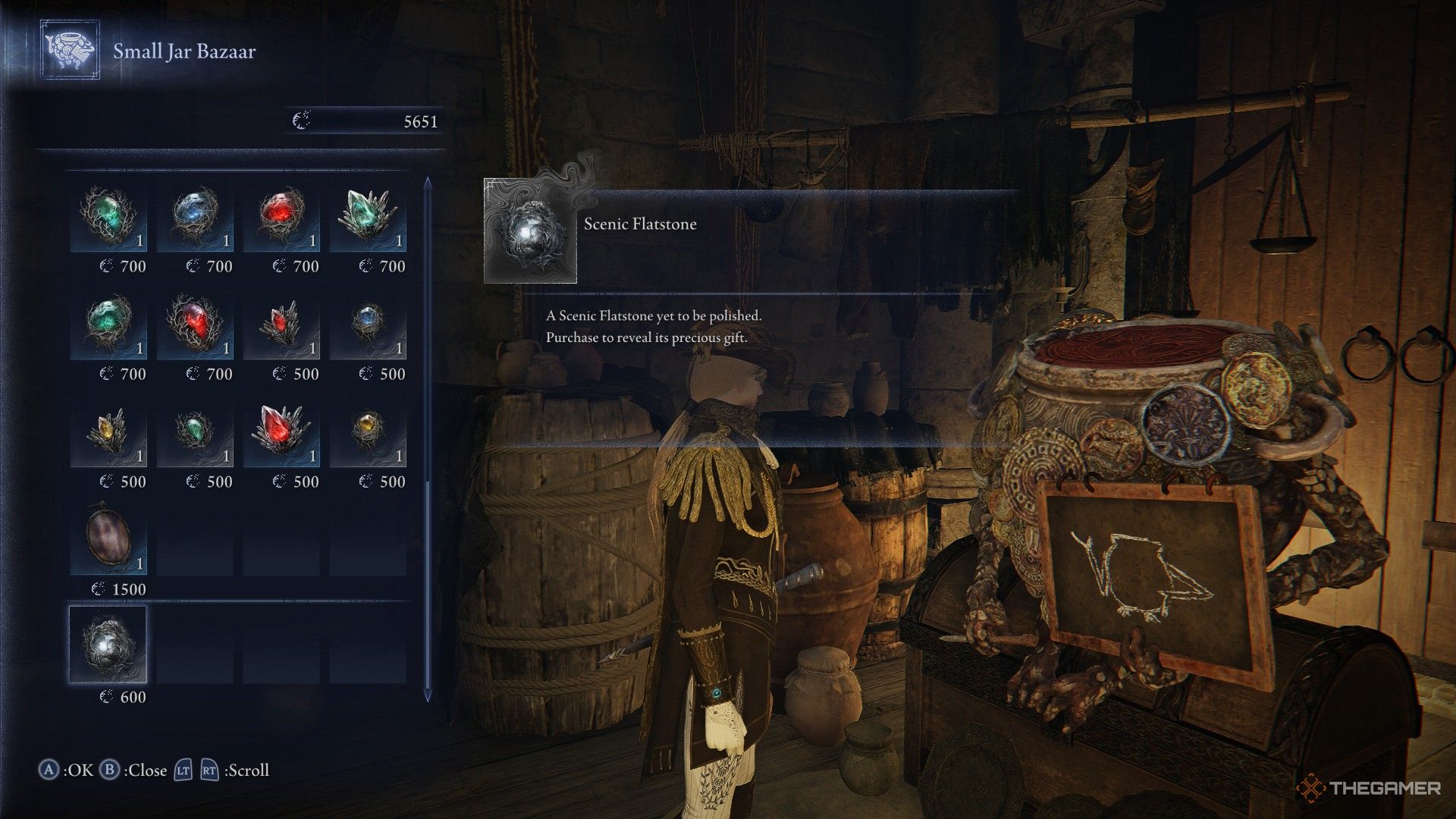 小さなjar bazaarの最初の購入は簡単ですが、ユニークなものを提供します風光明媚なフラットストーン。このアイテムを購入することにより、新しい遺物をランダムに生成できます。