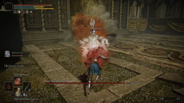 神のビーストダンシングライオンを倒すのに役立ついくつかの異なるビルドがあります。あなたは試すことができますブリードビルド(これは私が頼っているものです)、anインテリジェンスビルド壊滅的な遠隔呪文攻撃、またはascar色の腐敗ビルド、クリーチャーを攻撃することなく、ゆっくりとダメージを与えることができます。
