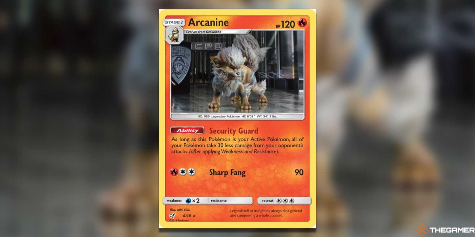 名探偵ピカチュウのアルカニン レアでは、このポケモンの異常に暗い描写が提供されており、これは史上初の非公式の伝説のポケモンであるという特徴を備えています。通常、このほのおタイプのポケモンが明るく晴れた日を楽しむ明るいシーンが見られますが、このバージョンではトーンがより深刻な色合いに変わります。