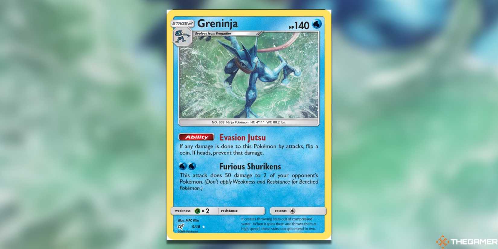 グレニンジャは、素早いジャンプの終わりに地面に低く構えるこのポケモンを描いた美しい動きのあるアートワークの背面で、同上に後押しされています。グレニンジャのクールな要素はよく模倣されますが、複製されることはほとんどありません。このカードでこのポケモンがどれほどユニークに獰猛に見えるかを見れば、その理由がわかります。ポケモン TCG で最も高価なグレニンジャ カードのいくつかと比較すると控えめな価格にもかかわらず、このカードは名探偵ピカチュウ セットの中で最も価値のあるオプションの 1 つとして際立っています。
