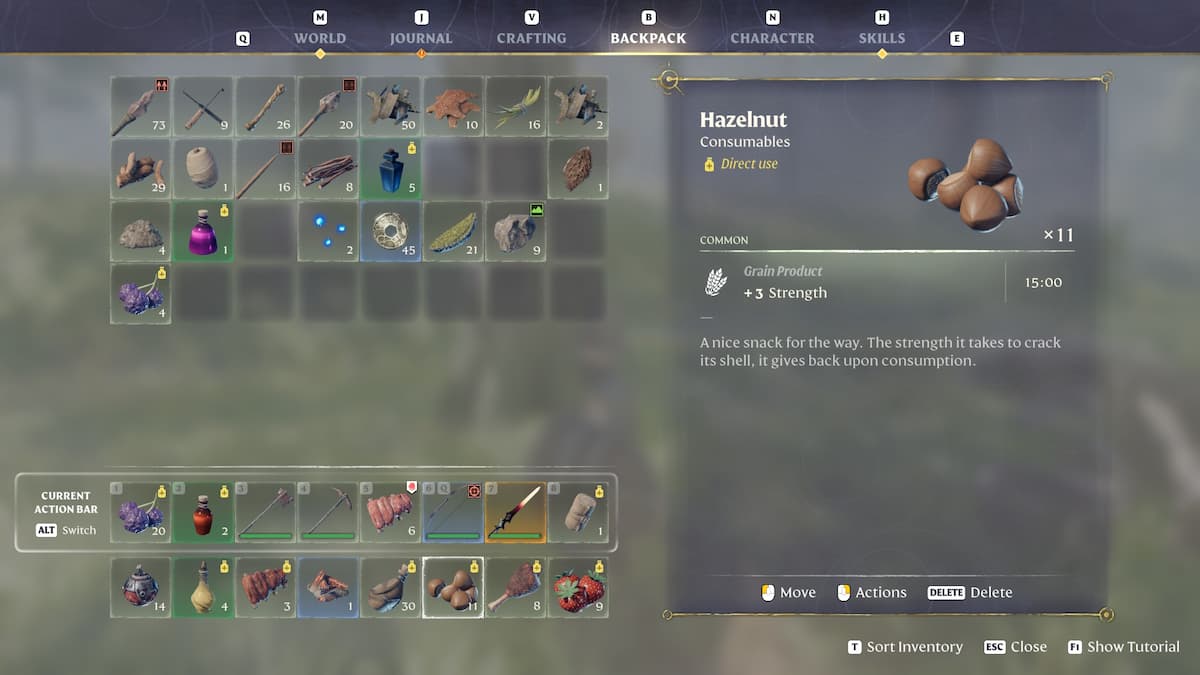 私は個人的にはいつも水、肉、イチゴ、ヘーゼルナッツを持っています。ヘーゼルナッツは、強度を高めることで近接損傷を増やします。これは、95%の時間で戦闘で利用しています。私はすべての食べ物の最大スタックを用意しようとしているので、私は完全に準備しています。