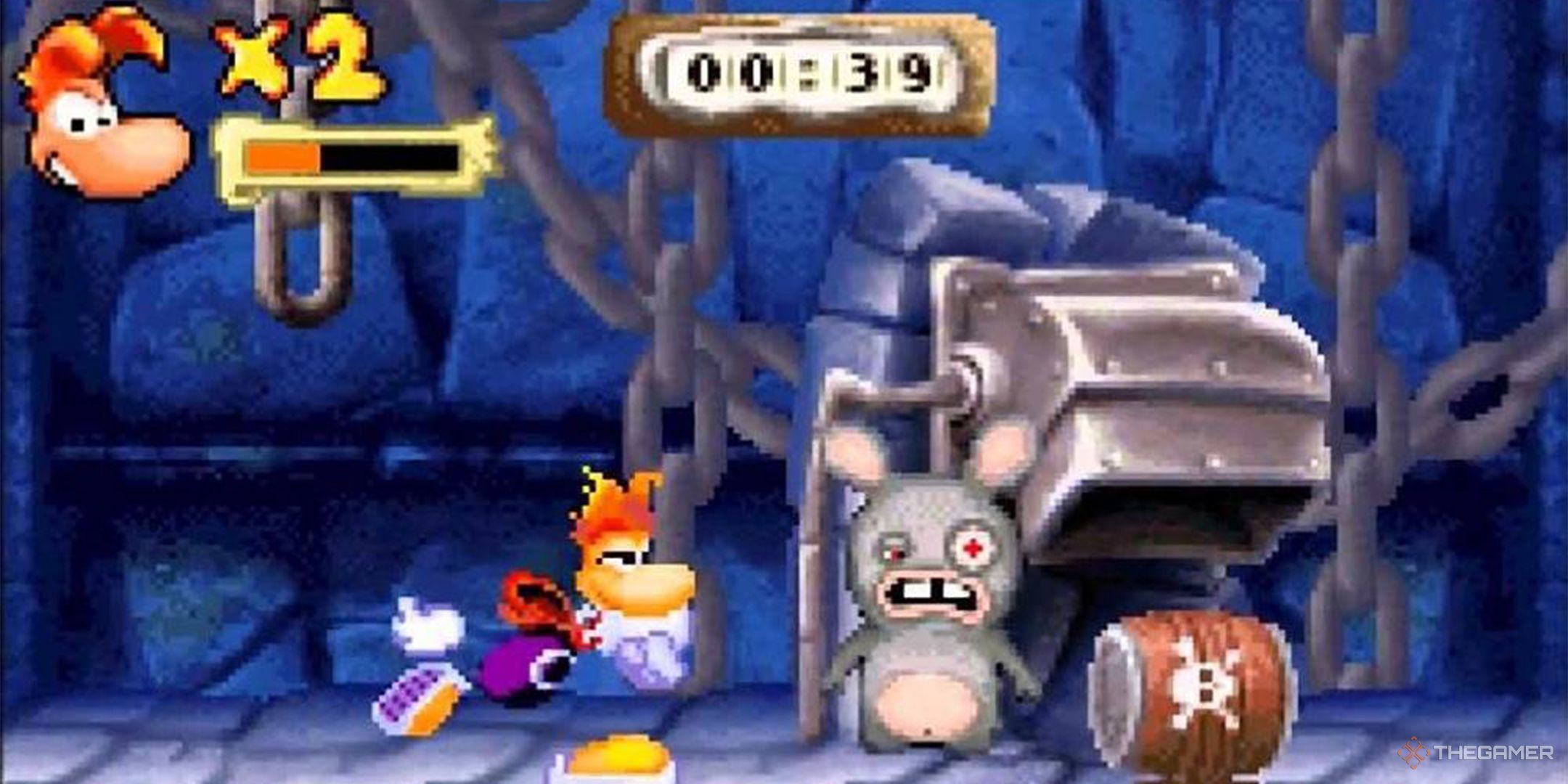 Rayman Raving Rabbidsは、メインのWiiバージョンから完全に変更されたもう1つのゲームです。 Wiiバージョンは、一連のミニゲームをプレイしたパーティーゲームであり、GBAバージョンは代わりにオリジナルのレイマンのような従来の2Dサイドスクロールプラットフォーマーとして開発されました。